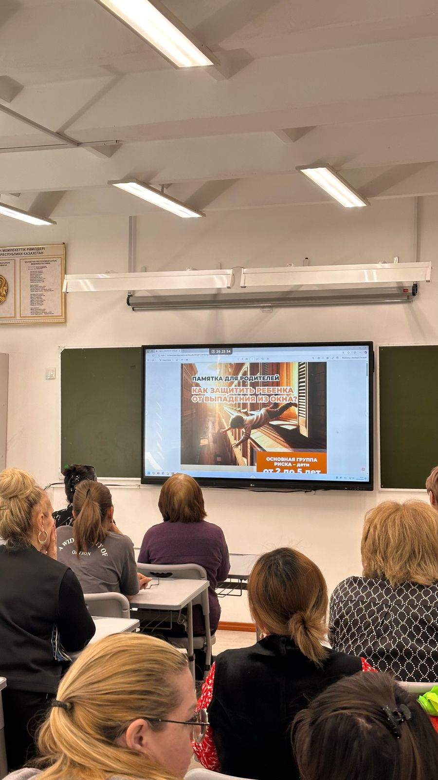 Жиналыс ата-аналар жұртшылығын суға батқан және терезеден құлаған балалардың саны, суға бату мен терезеден құлаудың негізгі себептері (ата-аналардың қадағалауы, тыйым салынған жерлерде шомылу), сондай-ақ осындай қайғылы жағдайлардың алдын алу шаралары туралы хабардар ете отырып өткізілді.