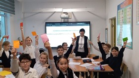 Шетел тілдері мұғалімдерінің онкүндігі аясында 5 «Д» сыныбында неміс тілі пәнінен «Meine Freizeit» тақырыбында ашық сабақ өтті. Сабақты Хуттубаева Б.Ж. жүргізді. Сабақ ауызша сөйлеу дағдыларын дамытуға ықпал етті. Оқушылар оқу дағдыларын бекітіп, жаңа лексикамен танысып, мәтінмен жұмыс жасады. Топтық жұмыс арқылы оқушылар бір-бірін тыңдап, түсінуге, сөйлеу әрекеттерінде өзара қарым-қатынас жасау дағдыларын дамытуға үйренді.