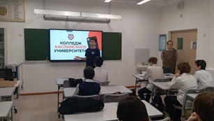 Выбор колледжа и будущей профессии – один из самых важных и ответственных моментов в жизни каждого человека! От качества полученного образования зависят профессиональный рост, карьера и возможности самореализации. 20 января 2025 года в КГУ «Гимназия №18» была проведена встреча учащихся 9-х классов с представителем колледжа Каспийского университета. Учащиеся узнали информацию о грантах, специальностях, скидках и льготах. Главными ценностями колледжа являются: студенты, знания, инновации, качество!