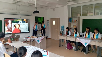 Встреча стала профессиональной площадкой для обсуждения актуальных направлений учебно-воспитательной работы, формирования компетентностного подхода, цифровизации и создания эффективной образовательной среды. Гостей приветствовали учащиеся старшего хора «Көктем», которые исполнили три произведения. Домбристы нашей гимназии учитель английского языка Нурмагамбетова Н.С., учащиеся 11 в класса Байдилда Нурмухамед и Балтабаев Асан исполнили произведение великого казахского композитора Курмангазы «Балбырауын». Учитель немецкого языка Кулумбетова Н.А. рассказала о нашей гимназии, достижениях учащихся, о перспективах изучения немецкого языка. Особый интерес вызвал открытый урок по немецкому языку, который провела учитель немецкого языка, педагог-мастер Козыбахова С.К. с учащимися 10 А класса. Педагог продемонстрировала современные методики, применение искусственного интеллекта, межпредметные связи и креативные подходы. Учащиеся 10 А класса продемонстрировали знание немецкого языка, исполнили произведения известных немецких композиторов и поэтов. Тема урока: Der literarisch- musikalische Salon. "Große Persönlichkeiten". Учитель физики Курманбаев Н.М. рассказал нашим гостям о проекте «Солнечные школы». Целью проекта является ознакомление школьников с концепцией использования возобновляемых источников энергии на примере фотовольтаики. В завершение участники подвели итоги в свободной дискуссии.