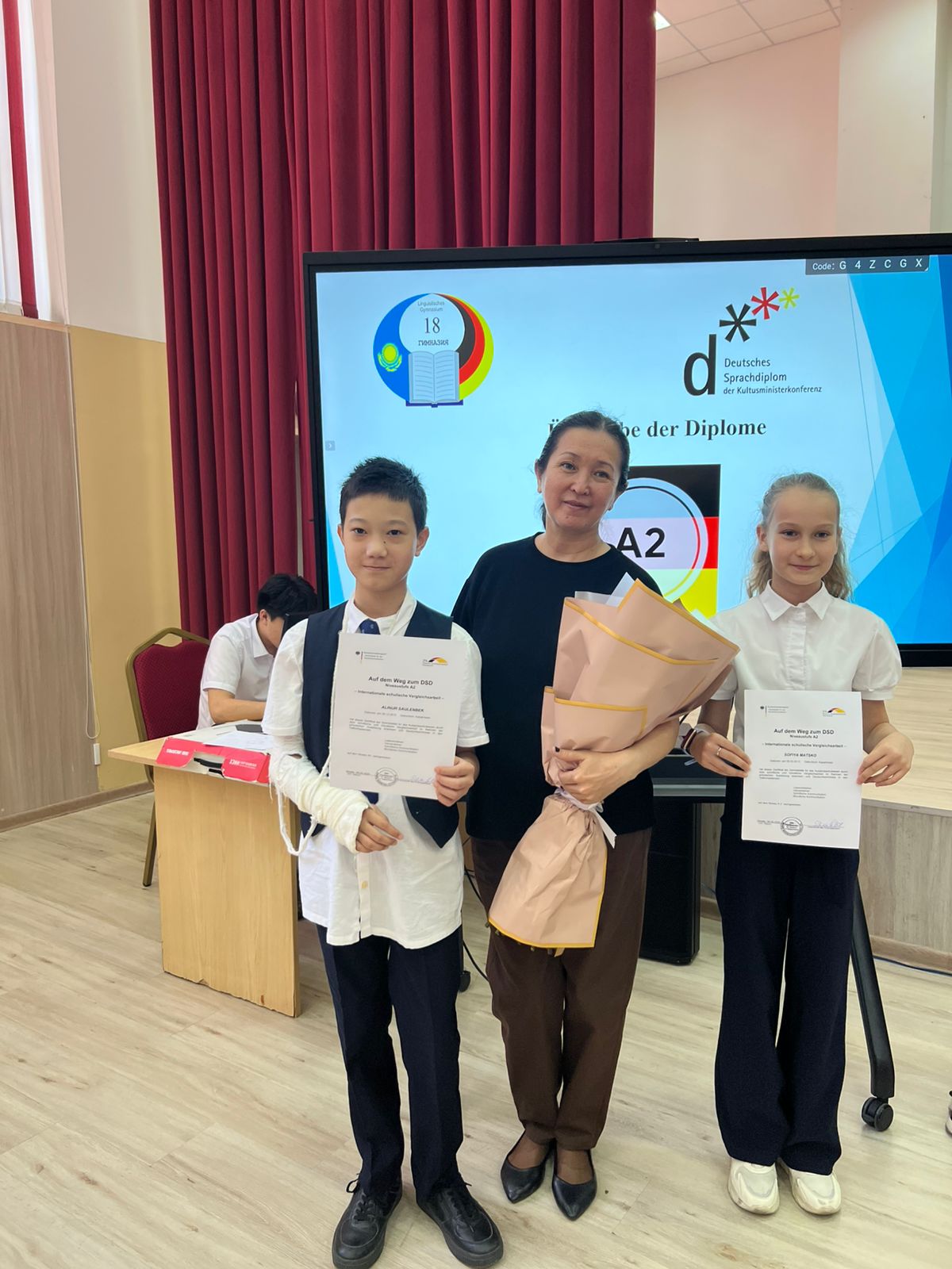 Учащиеся КГУ «Гимназия №18» считают, что знание иностранного языка дает человеку возможность ознакомиться с культурой и традициями других стран, способствует развитию мышления, воображения и памяти. Также это знание необходимо для эффективного взаимодействия государств друг с другом во многих сферах жизни – науке, политике, культуре, искусстве и других. Изучение иностранных языков дает огромное количество преимуществ. Помимо очевидных — свобода общения, карьерные перспективы, образование и международный опыт, это еще и отличный тренажер для мозга. 8 мая 2025 года в КГУ «Гимназия №18» состоялось торжественное вручение языковых дипломов по немецкому языку уровня А2. Учащиеся успешно сдали экзамены по немецкому языку и получили языковые дипломы уровня А2! Молодцы, ребята! Желаем вам успехов в дальнейшем!