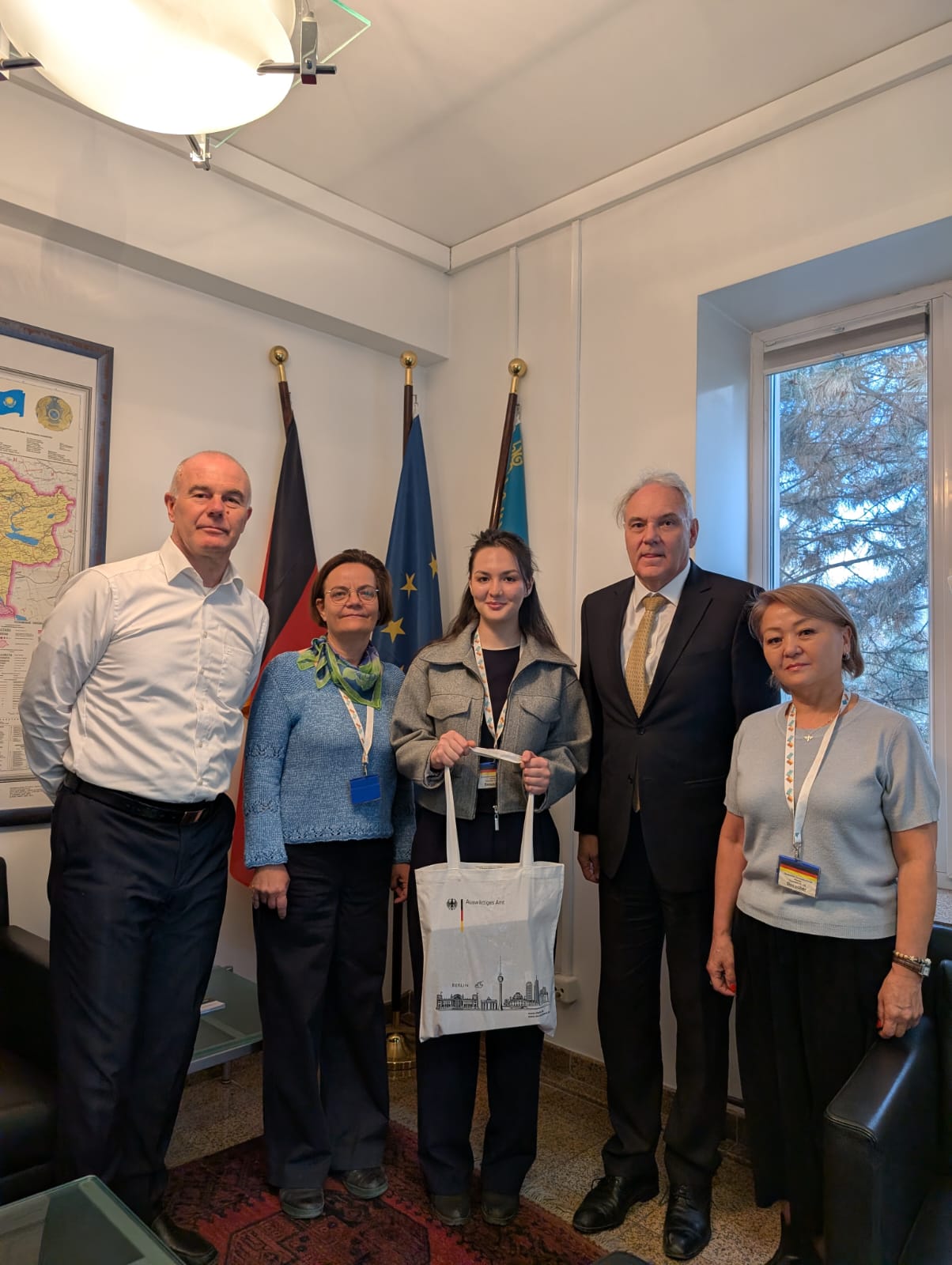Генеральный консул ФРГ в Казахстане господин Маттиас Кислер пригласил победительницу республиканского тура „Jugend debattiert“ Кунанбаеву Тамилу в консульство, чтобы лично поздравить и вручить приз.
