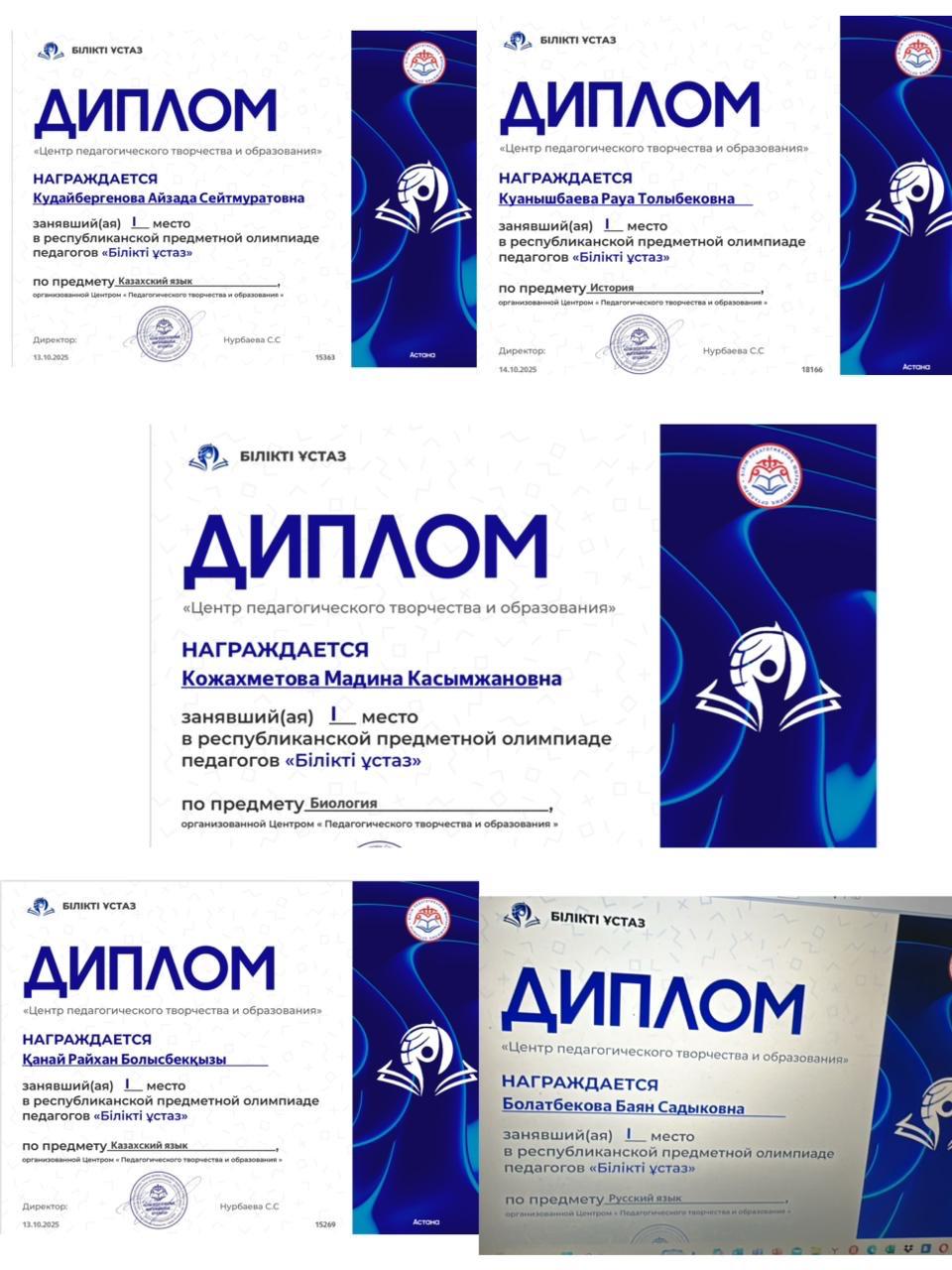 Участие учителей КГУ «Гимназия №18» в IV Республиканской педагогической олимпиаде «Білікті ұстаз – 2025»