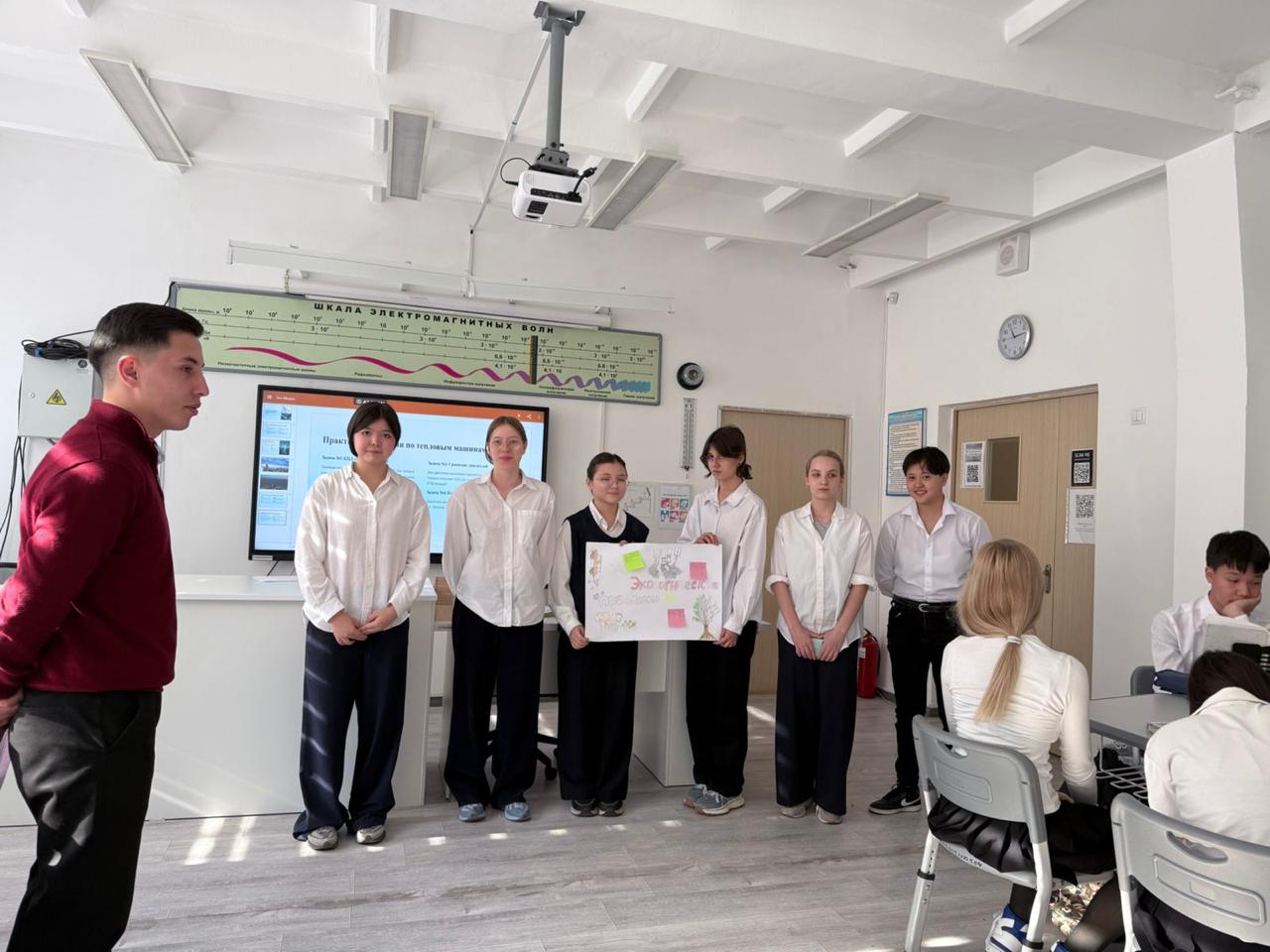 В КГУ «Гимназия №18» в рамках прохождения педагогической практики был проведён открытый урок по физике в 8 «В» классе учителем-практикантом КазНПУ им. Абая Ирсметовым Жамшитом Муратовичем.