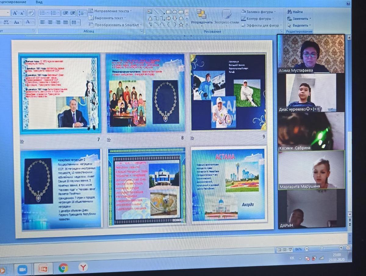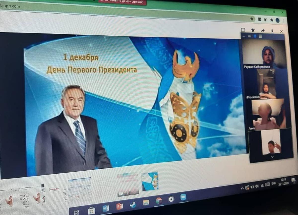 Учащиеся в ходе классного часа ознакомились с жизнью Нурсултана Абишевича Назарбаева в детские,