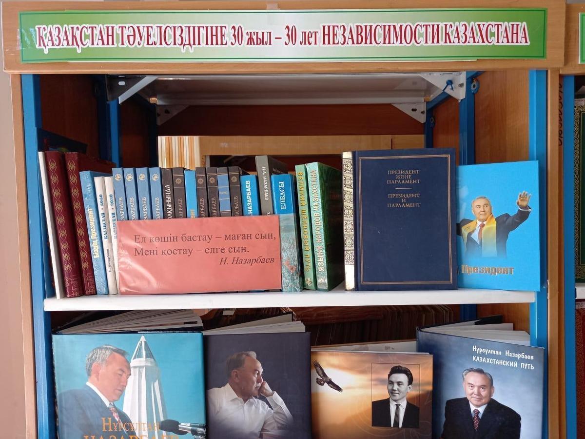 В читальном зале нашей гимназии организована книжная выставка "Тәуелсіздік - мәңгілік елдің тұғыры", посвященная 30-летию независимости Республики Казахстан.