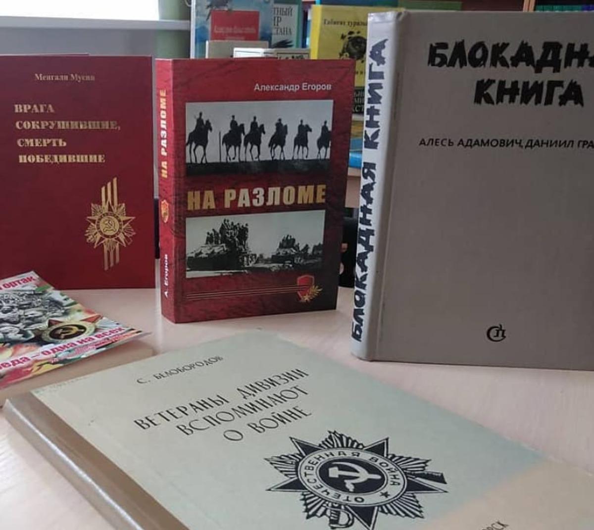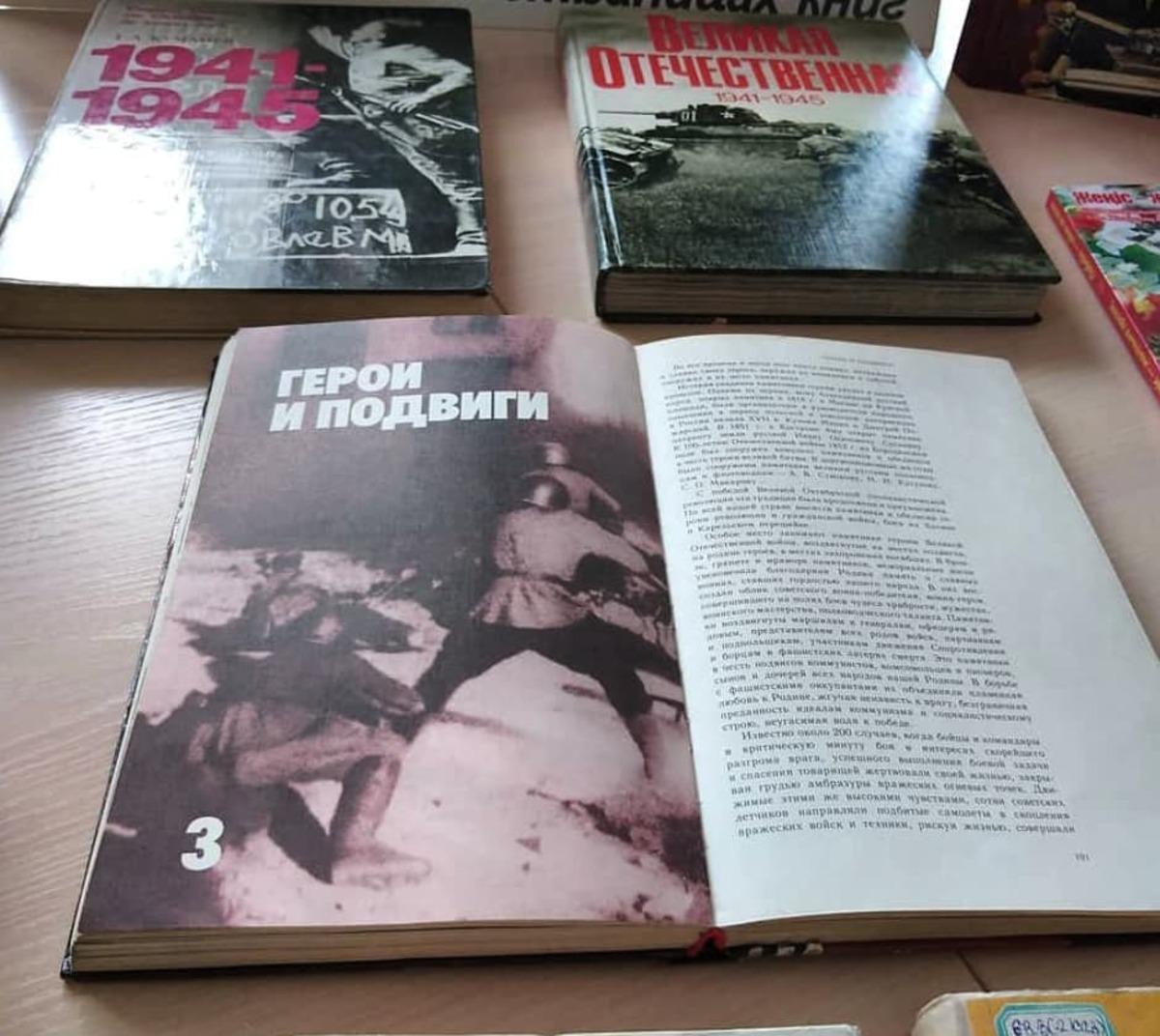 В школьной библиотеке в предверии праздника была организована книжная выставка "Великая Отечественная война на страницах книг", посвященная