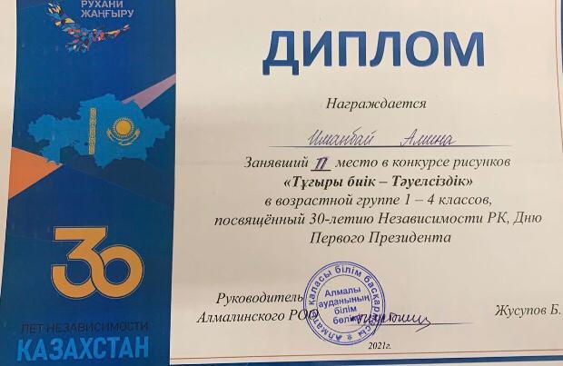 Поздравляем наших учащихся ,занявших призовые места в районном конкурсе рисунков «Тұғыры биік-Тәуелсіздік», посвящённый 30-летию Независимости РК, Дню Первого Президента.