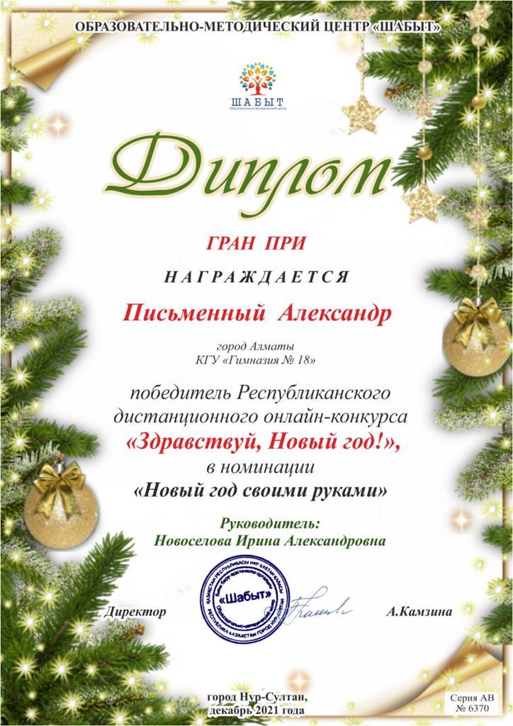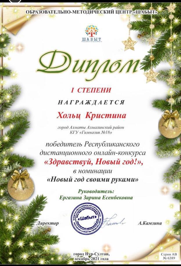 Поздравляем победителей Республиканского дистанционного онлайн-конкурса «Здравствуй, Новый год!»