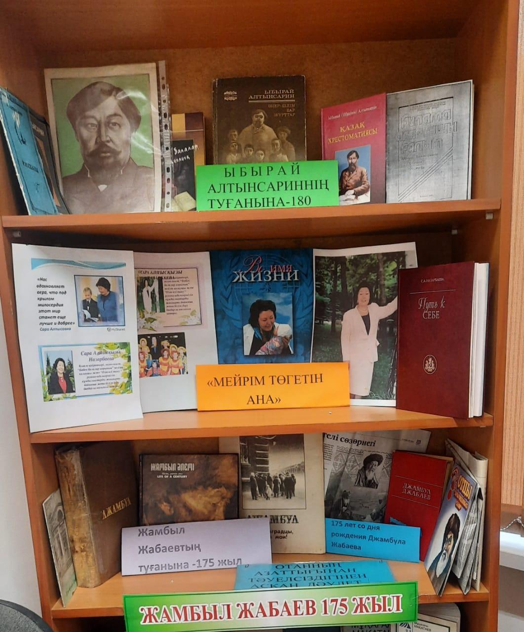 В рамках Республиканской декады «Самопознание: педагогика Любви и Творчества» в школьной библиотеке организована выставка книг деятельности автора программы нравственно-духовного образования «Самопознание» С.А. Назарбаевой