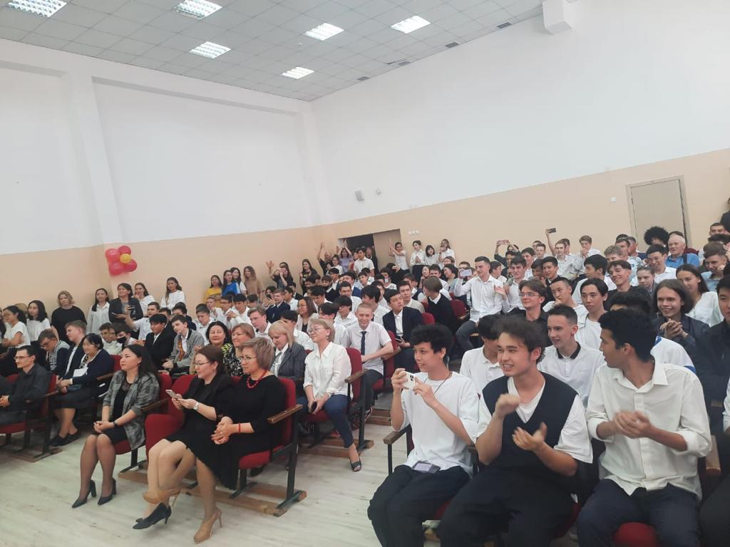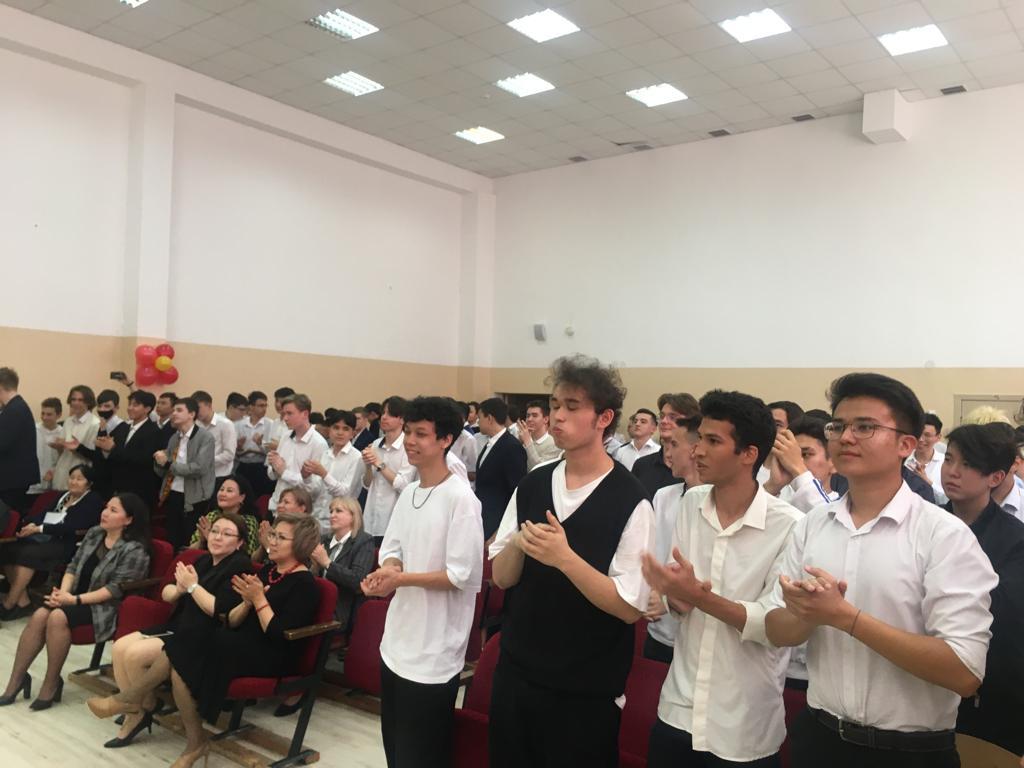 Собравшихся мужчин и мальчиков 8-11 классов поздравила директор гимназии Наурызбаева Гульджамиля Каратаевна.