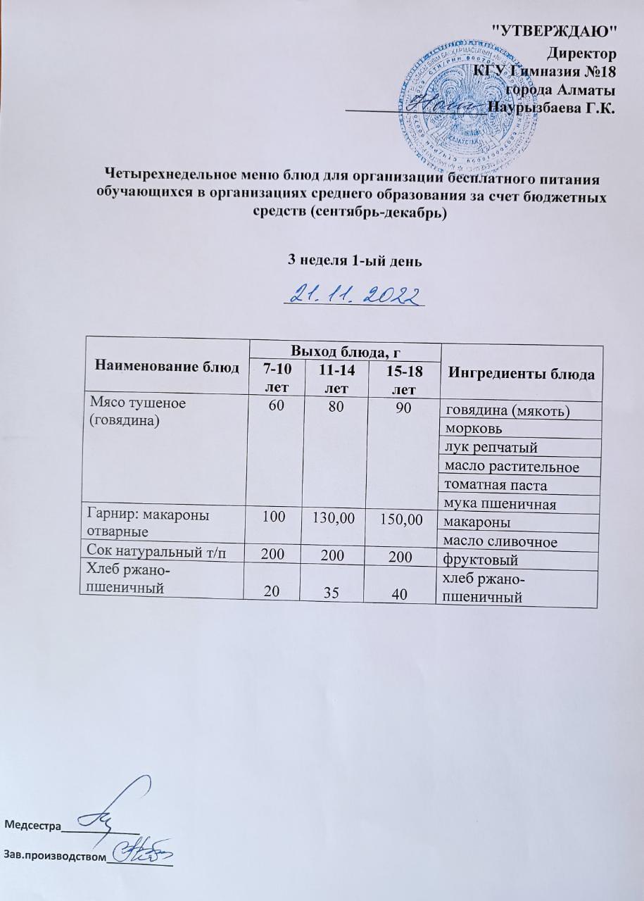 21 қараша 2022 0 1 2 3 4 5 Білім беру қоры есебінен тегін тамақтанатын оқушыларға арналған Жалпыға бірдей білім беру қоры есебінен тегін тамақтанатын оқушыларға арналған 4 апталық ас мәзірі (қыркүйек-желтоқсан)3апта 1-ші күн Осы беттің QR-коды:QR-код этой страницы: