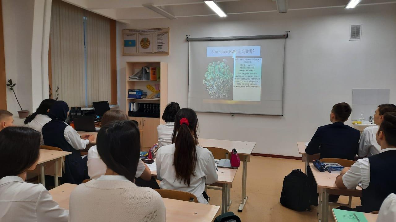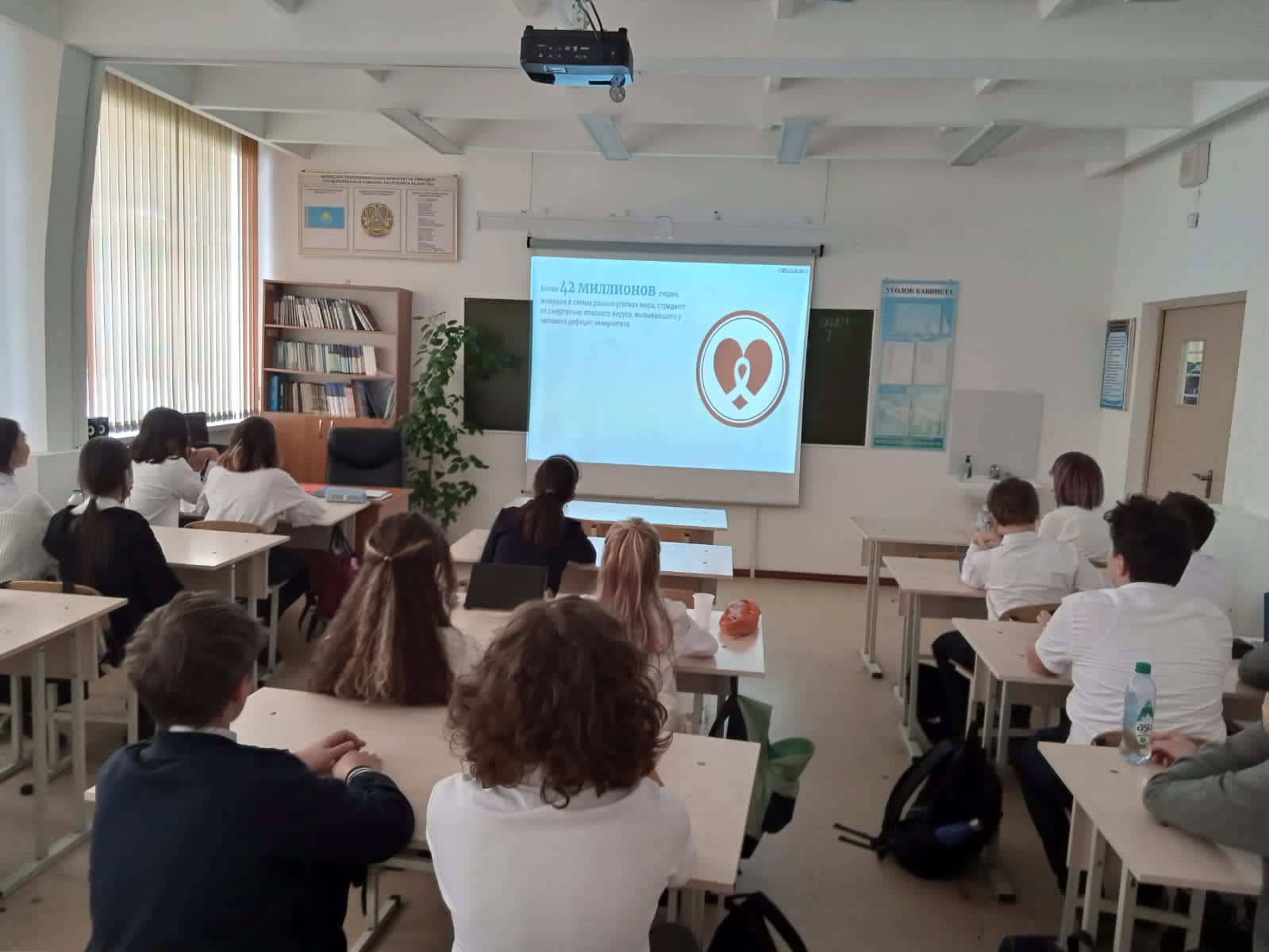 Оқушылар арасында салауатты өмір салтын қалыптастыру жөнінде хабардар болу деңгейін көтеру мақсатында 5-11 сыныптар жетекшілері 29.11.2022ж. ЖИТС-мен Халықаралық күресу күніне арналған сыныптық сағаттар өткізді.