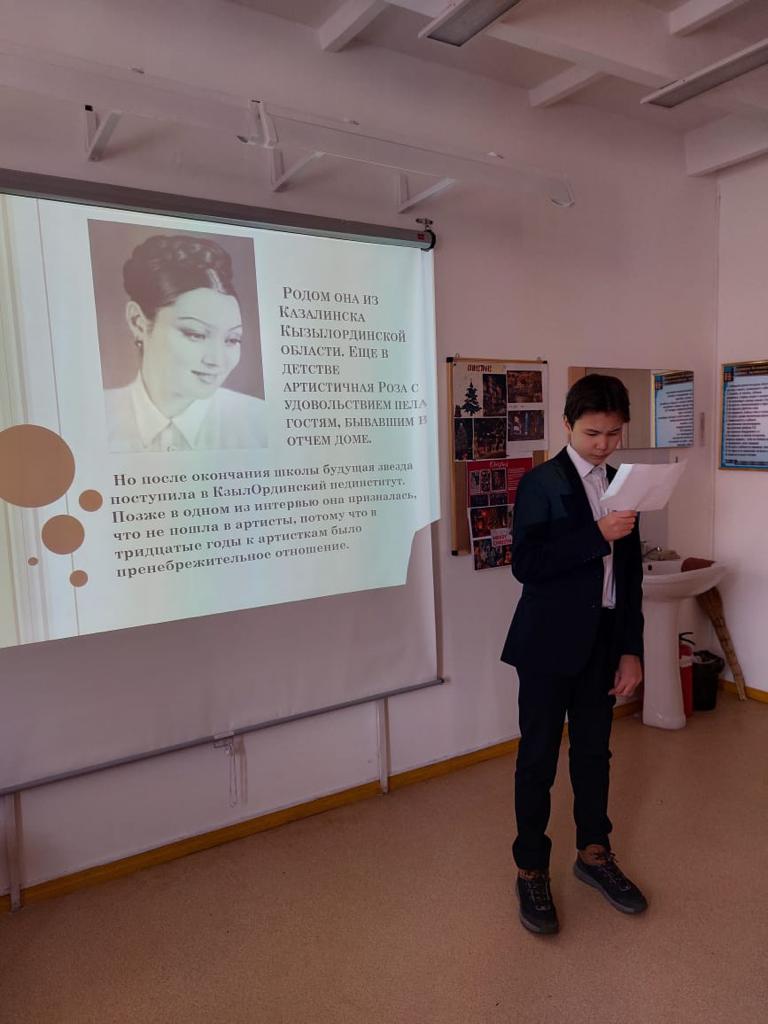 17 қаңтар күні 1-11 сыныптар жетекшілері әйгілі әнші Роза Бағланованың 100 жылдығына арналған сыныптық сағаттар өткізді.