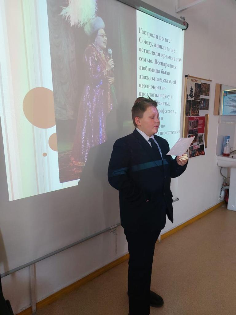 17 января классными руководителями 1-11 классов проведены классные часы, посвящённые 100 -летию со дня рождения выдающейся певицы Розы Баглановой.