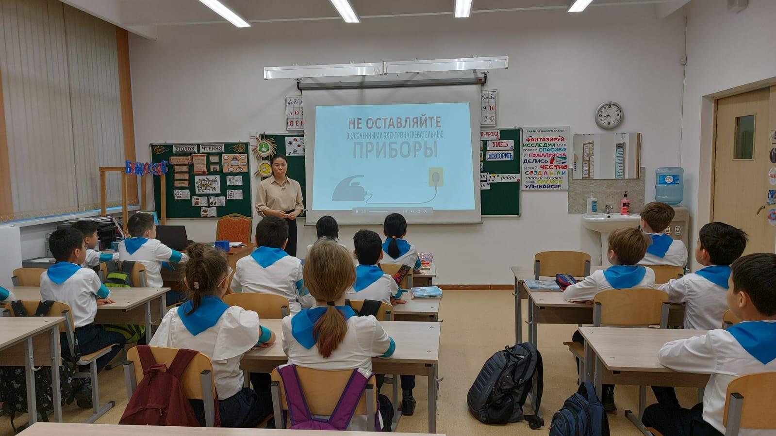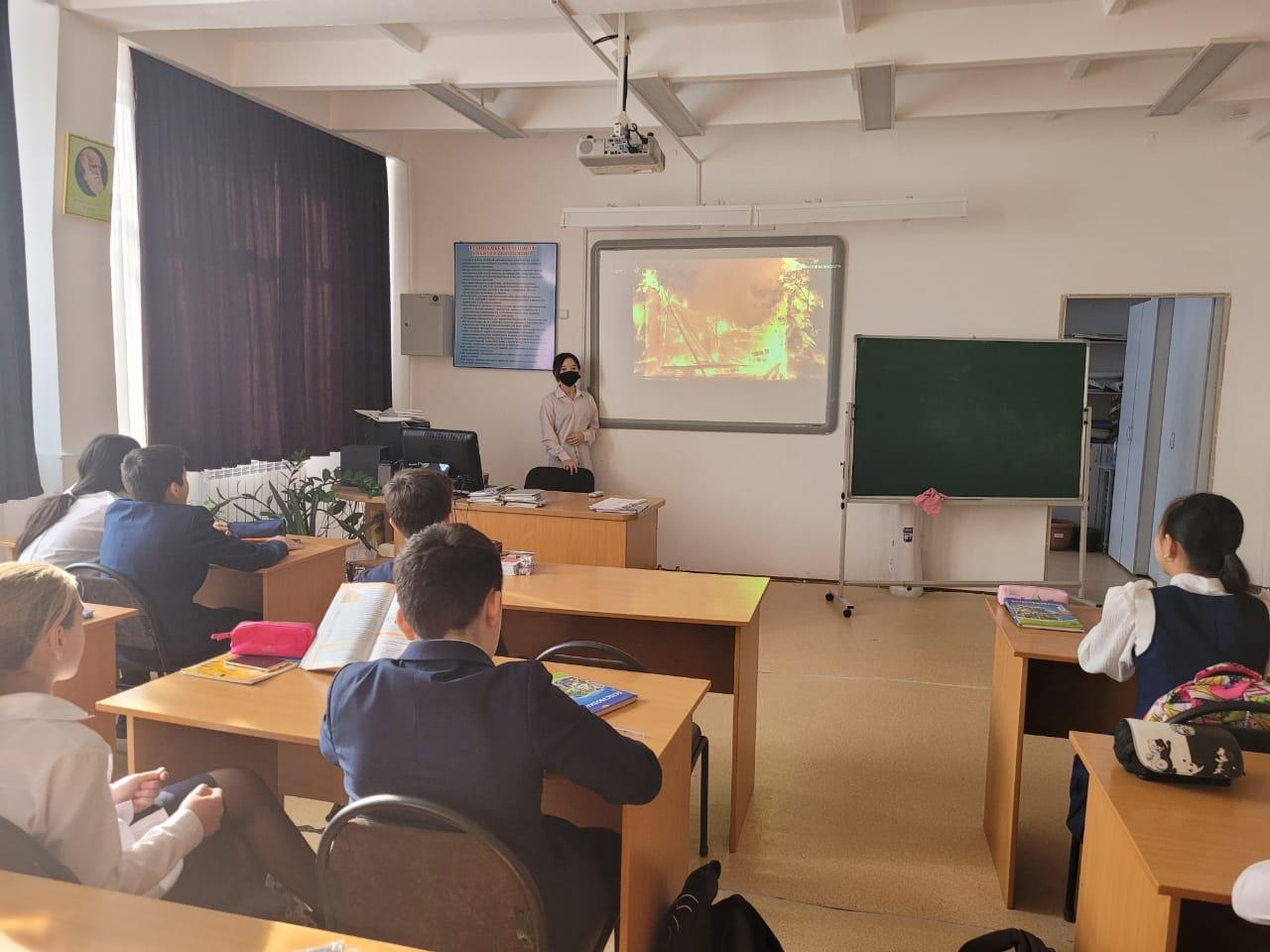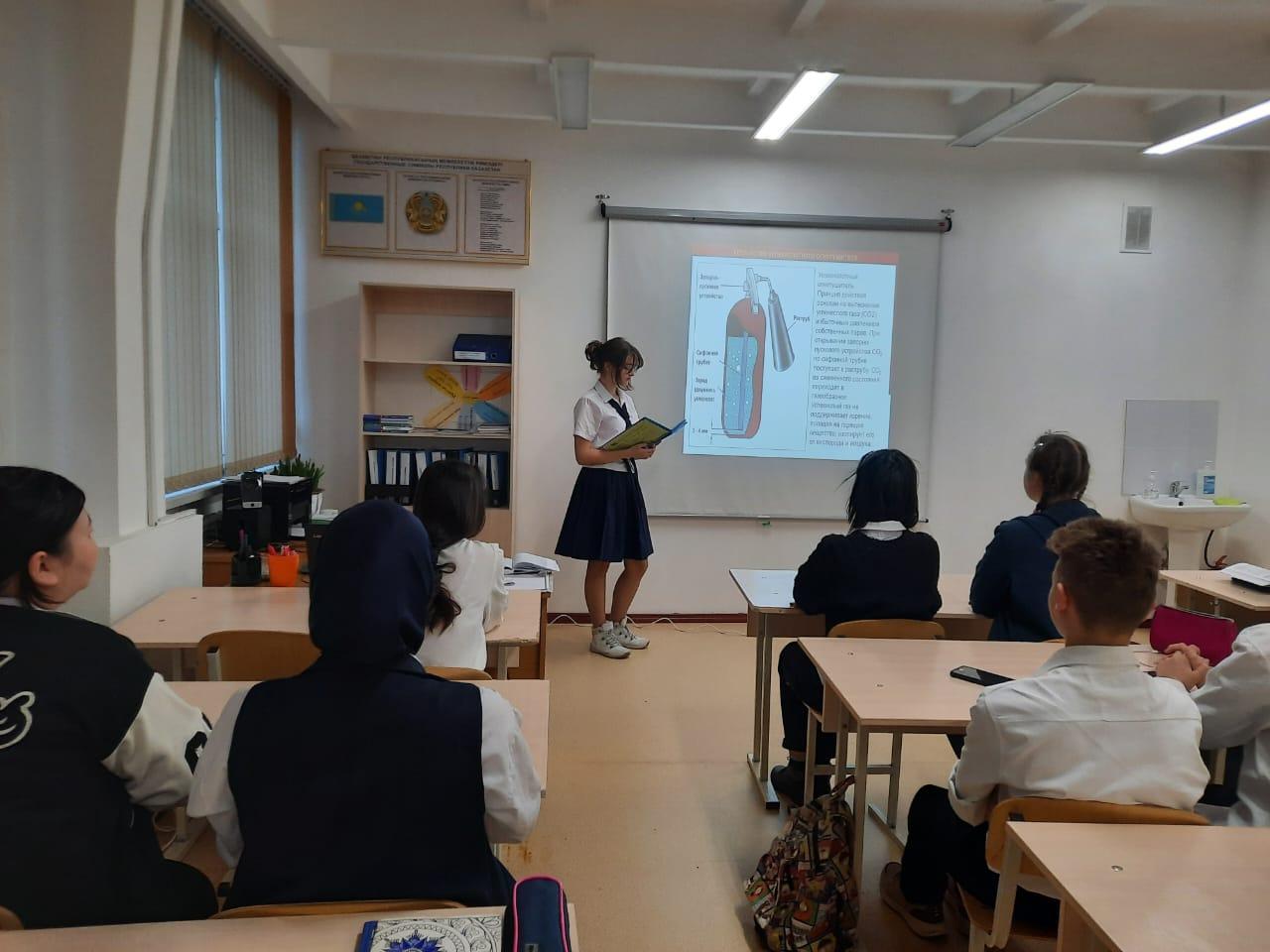 Оқушылар арасында өртке қарсы тұру жөнінде білімдерін арттыру және өрт қауіпсіздігі Ережелерін оқыту бойынша жүргізілетін жұмыс тиімділігін көтеру мақсатында, 31.01.2023ж. 1-11 сыныптар жетекшілері "Өрт сөндірудегі бастапқы құралдар. Автоматты өрт сөндіру жүйесі. Өрт сөндіру автокөлігі мен өрт сөндіру құралдары. Өрт пайда болу кезінде не істеу қажет?" тақырыбына сыныптық сағаттар өткізді.