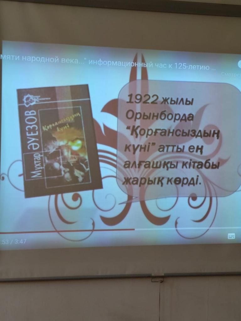 Классный час, посвященный 125 - летию со дня рождения Мухтара Омархановича Ауэзова.