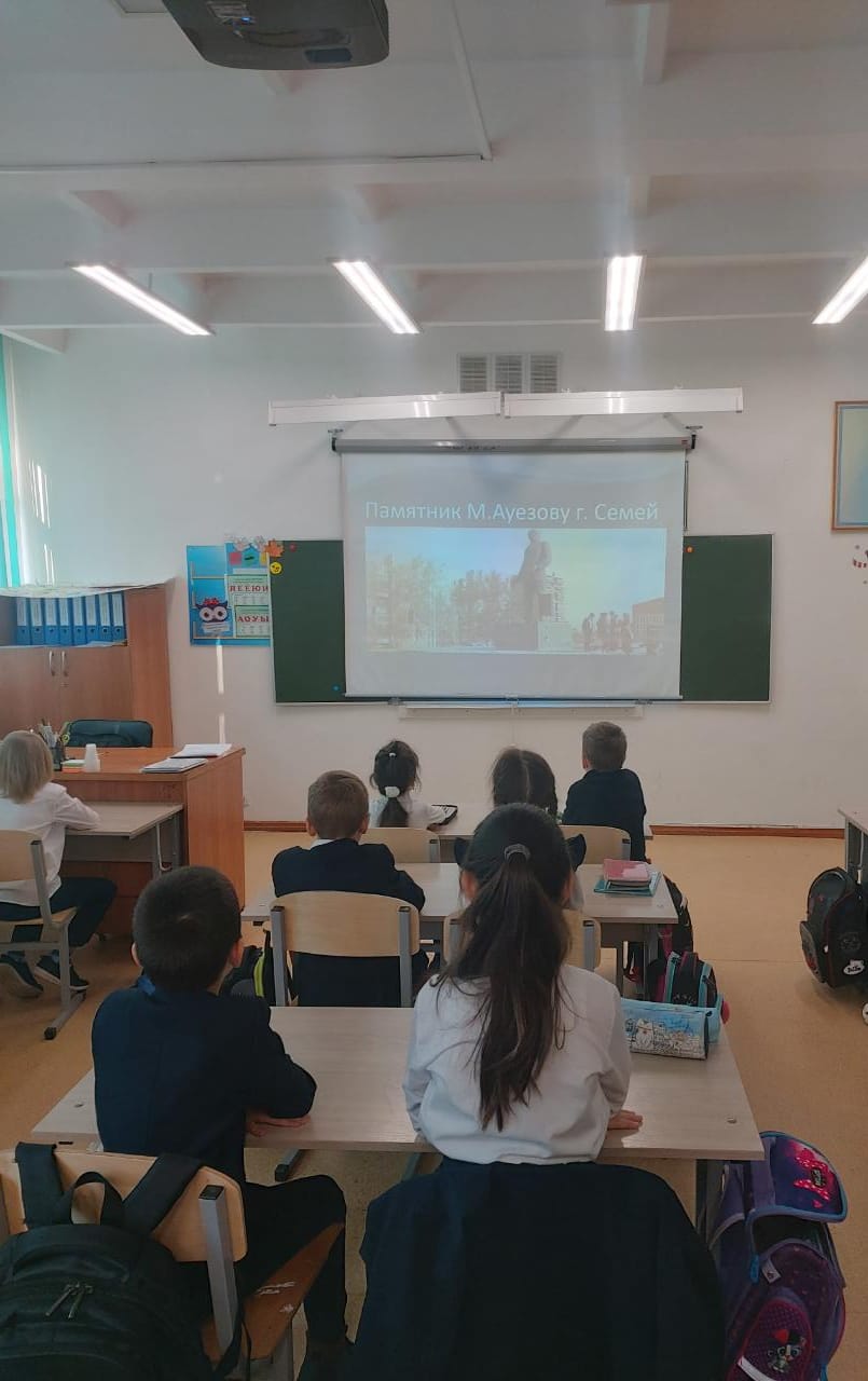 Қазақ әдебиетінің классигі, көрнекті суретші, ғалым, педагог Мұхтар Әуезовтың сан қырлы дарындылығына көз ашу мақсатында, гимназиямызда оның шығармашылығына арналған сыныптық сағаттар өтті.