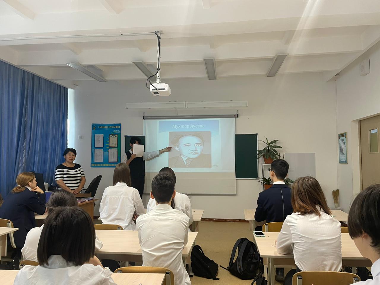 Для раскрытия многогранного таланта классика казахской литературы, выдающегося художника, учёного, педагога -Мухтара Ауэзова в гимназии прошли классные часы,посвященные его творчеству.