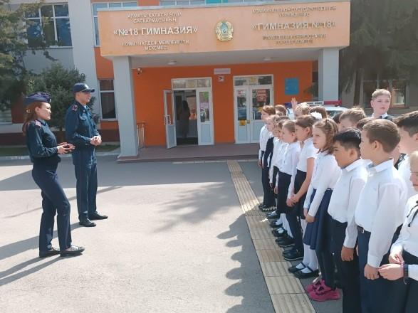 «Жолдарда балалардың қауіпсіздігі!» кең ауқымды акциясы аясында Алмалы ауданының ПБ ЖПҚБ ЮПБ инспекторлары Баканова А.А. және Тұратай А.Б. гимназия оқушылары арасында профилактикалық әңгімелер өткізді.