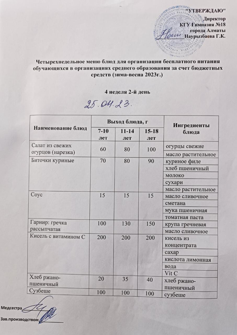 25 сәуір 2023 0 1 2 3 4 5 Оқушыларға тегін берілетін тағамдардың мәзірі (қаңтар-мамыр) 4 апта 2 күні Осы беттің QR-коды:QR-код этой страницы: