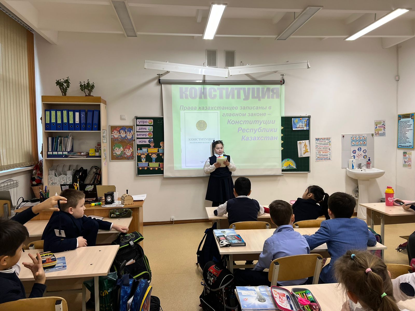 Гимназия оқушылары арасында "ҚР-ның Мемлекеттік рәміздерінің қабылданғанына 30 жыл" тақырыбында сыныптық сағаттар өткізілді. Среди учащихся гимназии были проведены классные часы на тему "30-летие принятия Государственных символов РК".