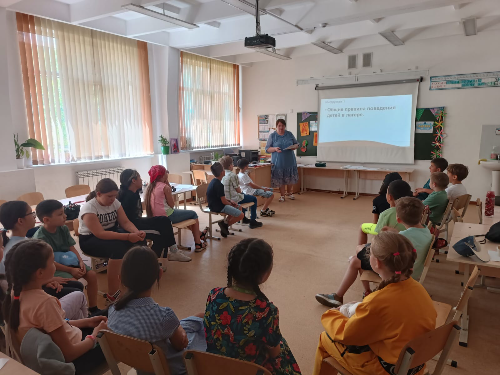 Балалармен лагерьдегі мінез-құлық ережелері туралы әңгіме жүргізілді.