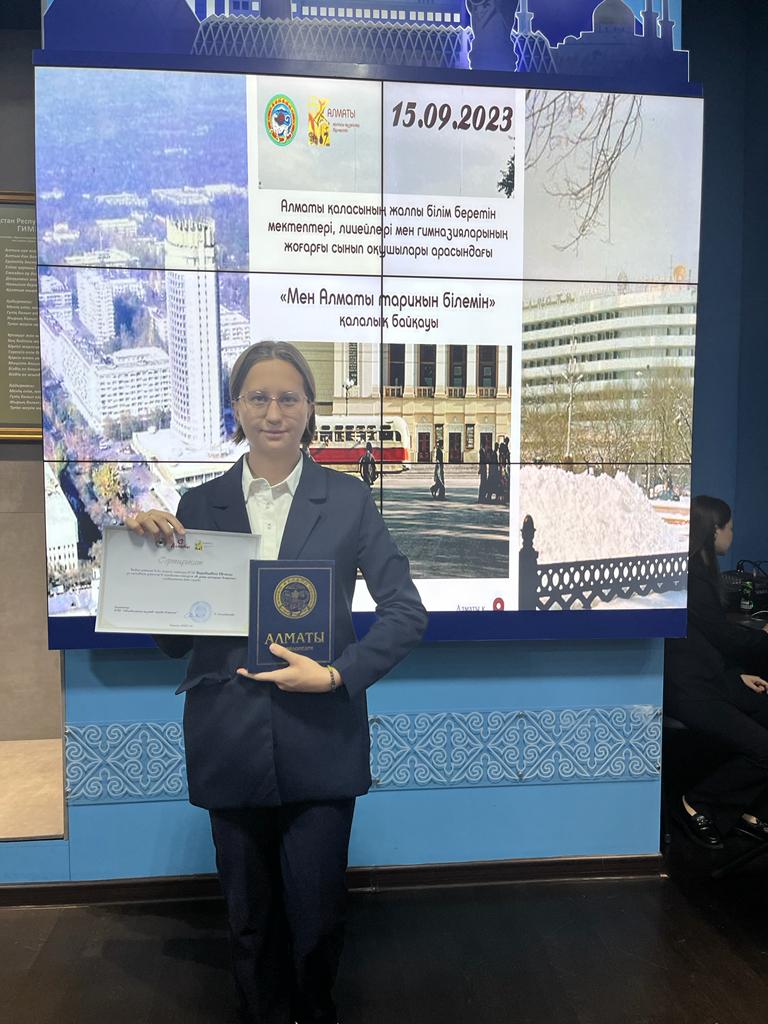 По итогам городского конкурса 15.09.23г Евгения и руководитель Бутикенова Ж.С . были приглашены в городской музей,где в торжественной обстановке , получили сертификаты и призы.