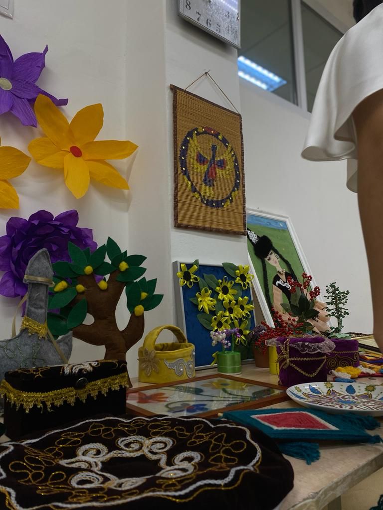 Ко Дню города Алматы в гимназии состоялось открытие выставки народно-прикладного творчества. На выставке представлено более 50 работ, выполненных в различных техниках: вышивкой,аппликацией, пластилином,бисером ,бумагой.