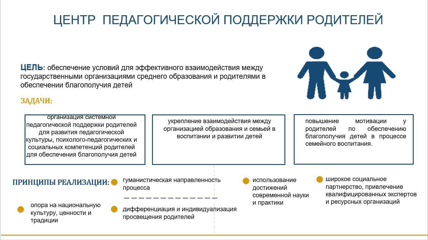 Цель педагогической поддержки: обеспечение условий для эффективного взаимодействия между государственными организациями среднего образования и родителями в обеспечении благополучия детей.