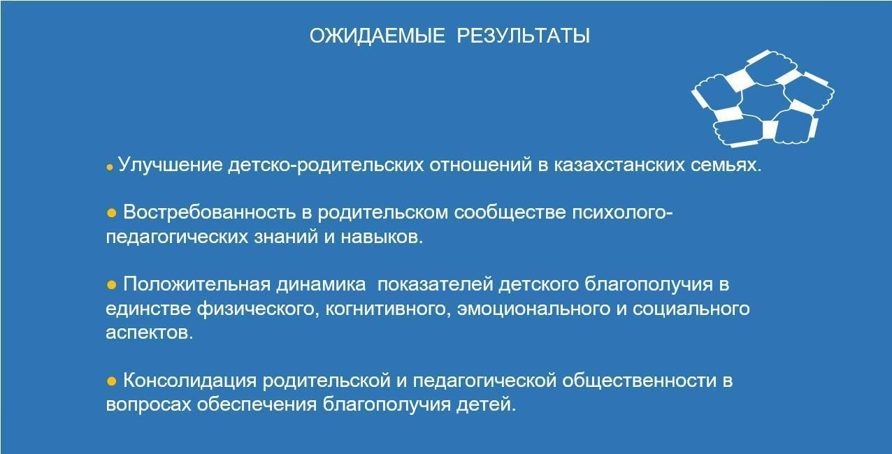 3) отбасылық тәрбие процесінде балалардың әл-ауқатын қамтамасыз ету бойынша ата-аналардың уәждемесін арттыру.