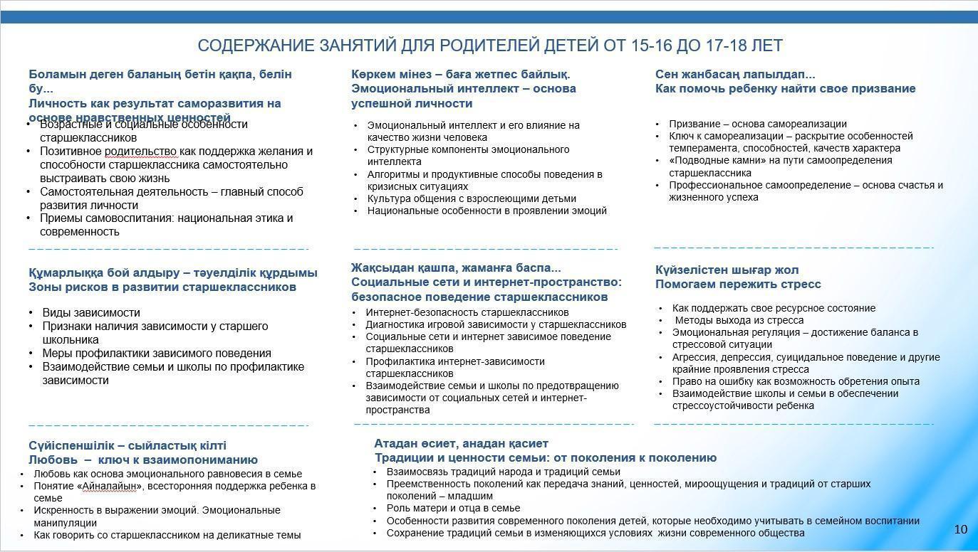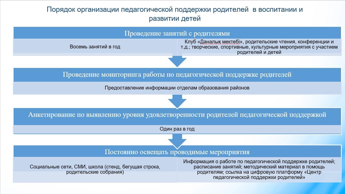 1) балалардың әл-ауқатын қамтамасыз ету үшін ата-аналардың педагогикалық мәдениетін, психологиялық-педагогикалық және әлеуметтік құзыреттерін дамытуға бағытталған ата-аналарға жүйелі педагогикалық қолдау көрсетуді ұйымдастыру;