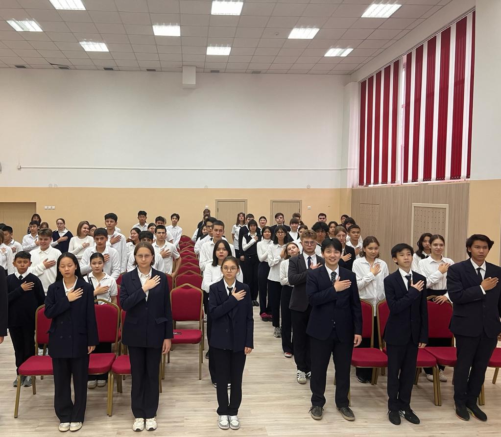 23.10.2023 в 12.00 в актовом зале гимназии состоялось массовое исполнение государственного Гимна Республики Казахстан. В мероприятии приняли участие ученики 8-11 классов.