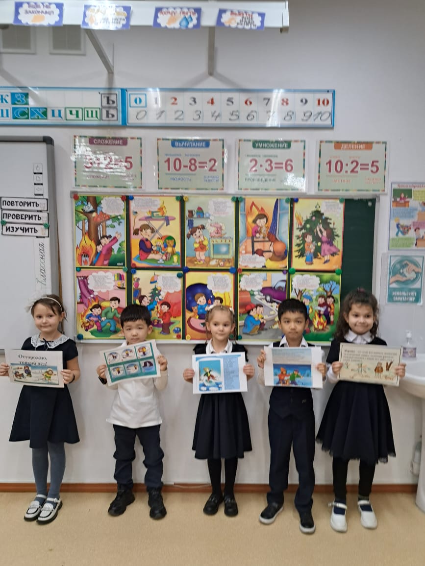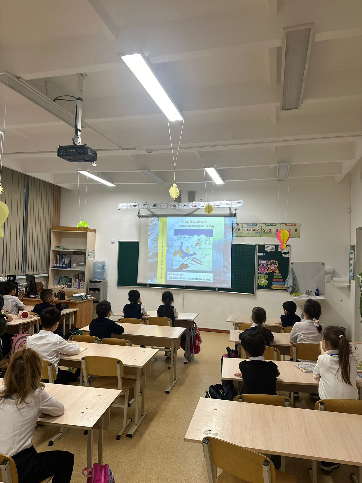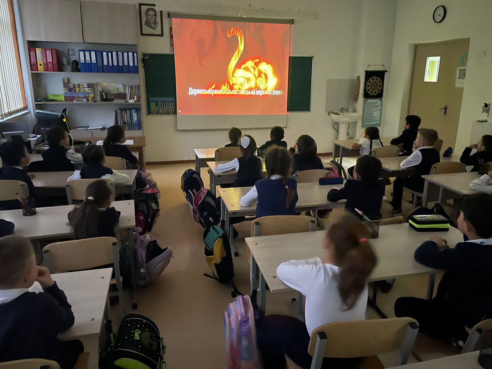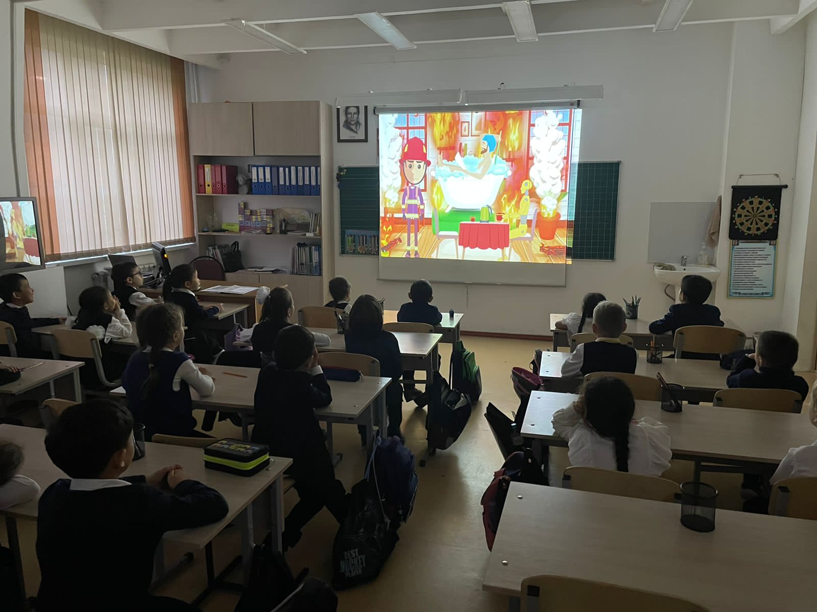 2023 жылдың 21 қарашасында 1-11 сынып оқушыларын мектептегі өрт қауіпсіздігі режимімен таныстыру, өрт кезіндегі іс-әрекеттерді жаттықтыру және өрт кезінде қауіпсіз мінез-құлық дағдыларын жетілдіру мақсатында «Мектептегі өрт қауіпсіздігі режимі», «Қолда бар негізгі құтқару құралдары» тақырыбында сынып сағаттар өткізілді.