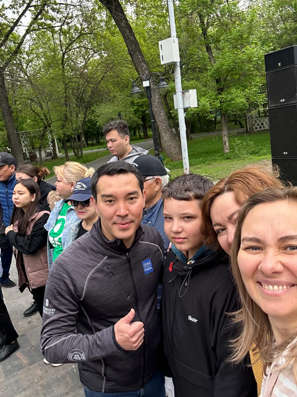 В субботу, 27 апреля, в парке им Ганди прошла массовая посадка зеленых насаждений с закладкой яблоневых садов в рамках акции «Алматы - город-сад». К общегородской акции присоединились жители Алмалинского района и ученик нашей гимназии Письменный Александр,который собственноручно посадил яблоневые деревья. На память об этой замечательной акции Аким Алмалинского района Арман Шамшин сфотографировался с самыми активными участниками акции.