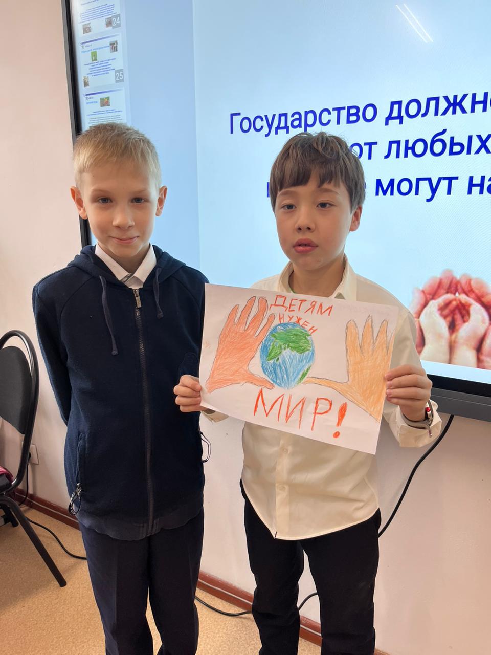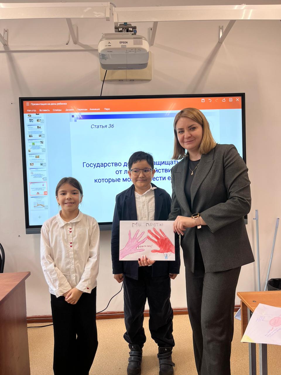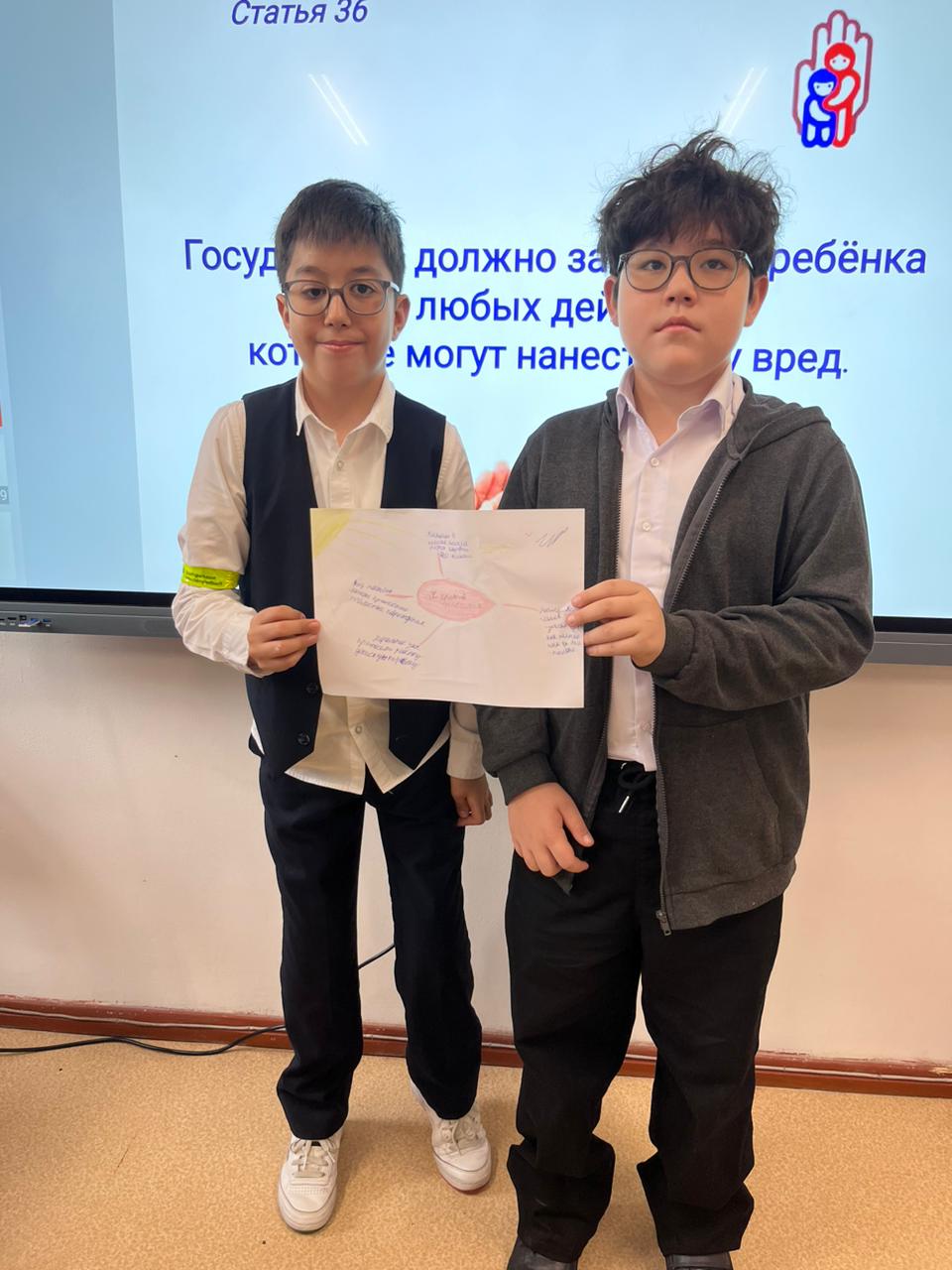 Осы күні әлеуметтік педагог Намвар М.И. 5-сынып оқушыларымен «Баланың құқықтары» тақырыбында әңгіме жүргізіп, Қазақстан Республикасының Конституциясы бойынша түсініктемелер берді. Оқушылар мектептегі, отбасындағы және қоғамдағы балалардың құқықтары мен міндеттері туралы білімдерін кеңейтті.