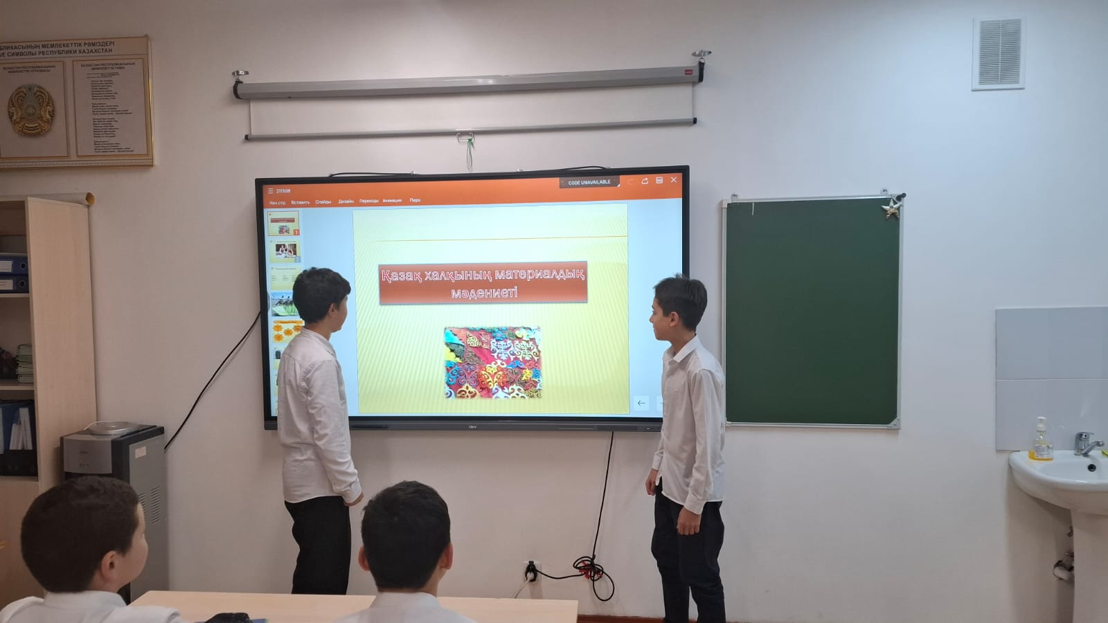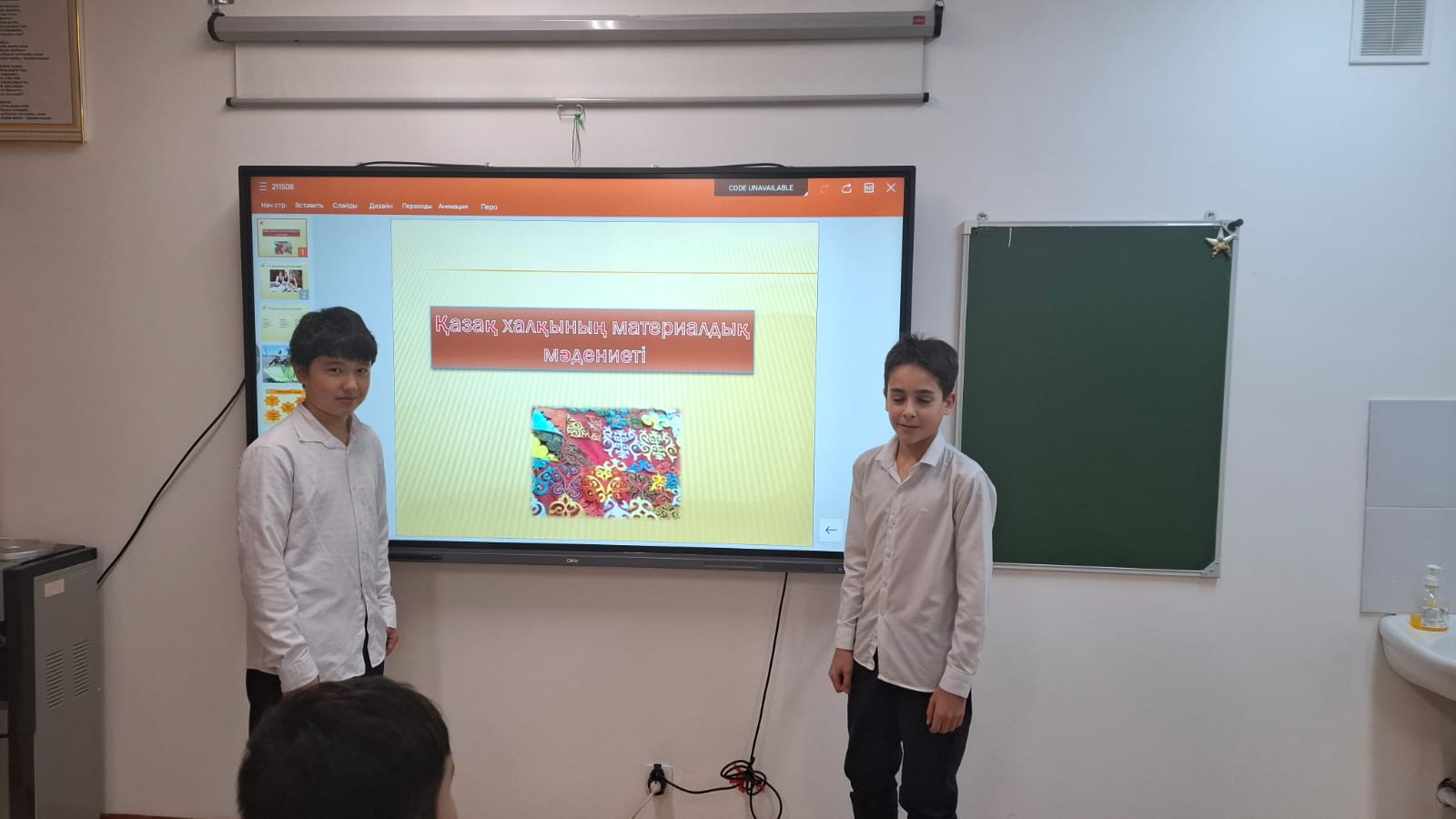 “Мемлекеттік тіл-Менің тілім” іс-шарасы аясында 18 Гимназияның тарих пәні мұғалімдерінің ұйымдастыруымен 6 “А” сынып оқушылар арсында “Қазақ халқының материалдық мәдениеті “Атты сыныптан тыс іс-шара өткізілді. Шараны өткізу барысында ұлттық киім элементтері ұсынылды.