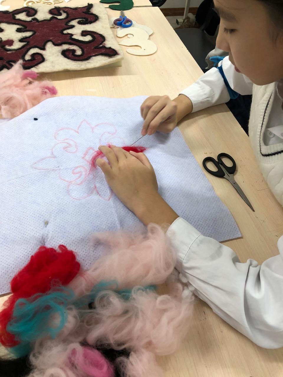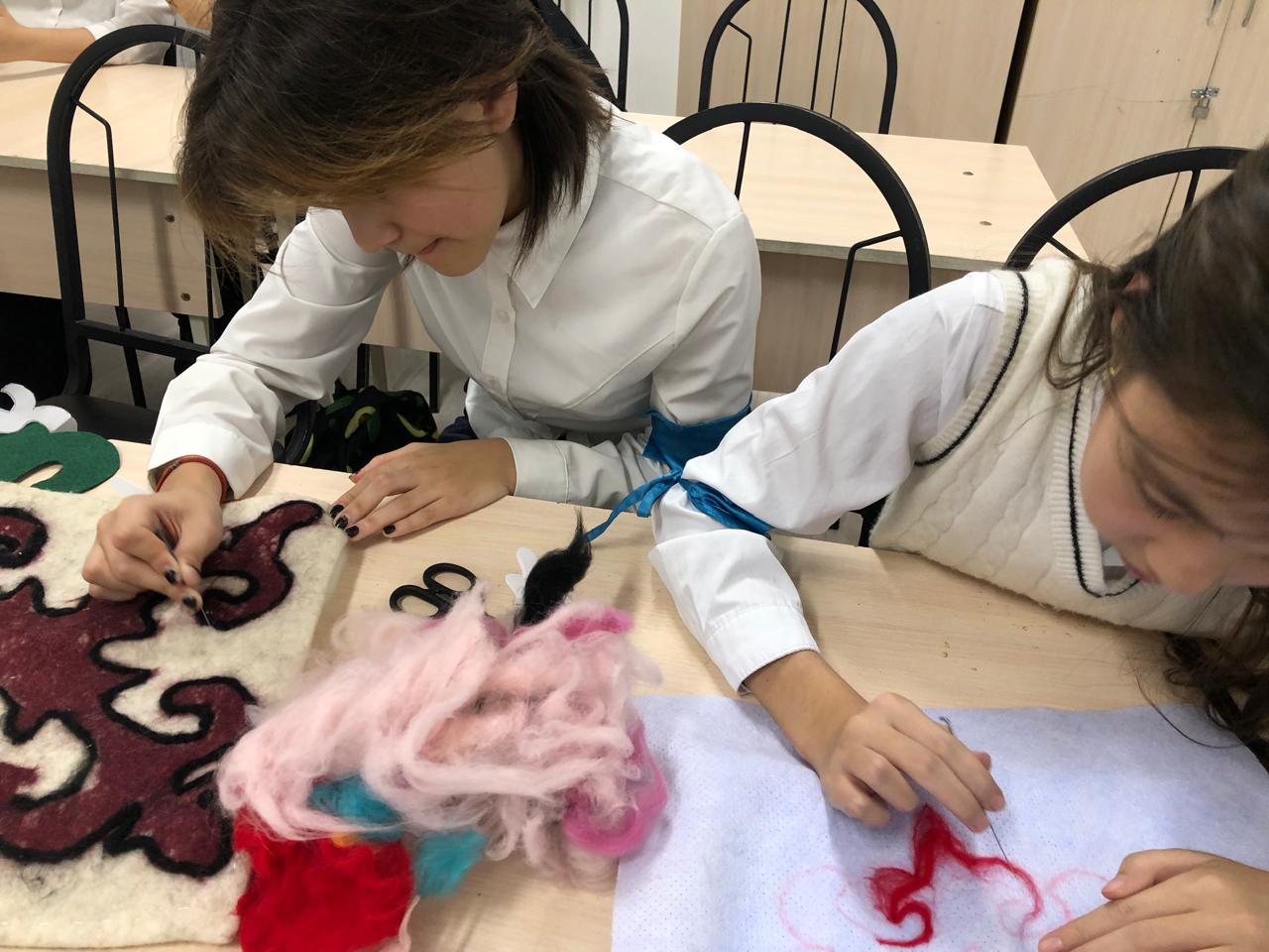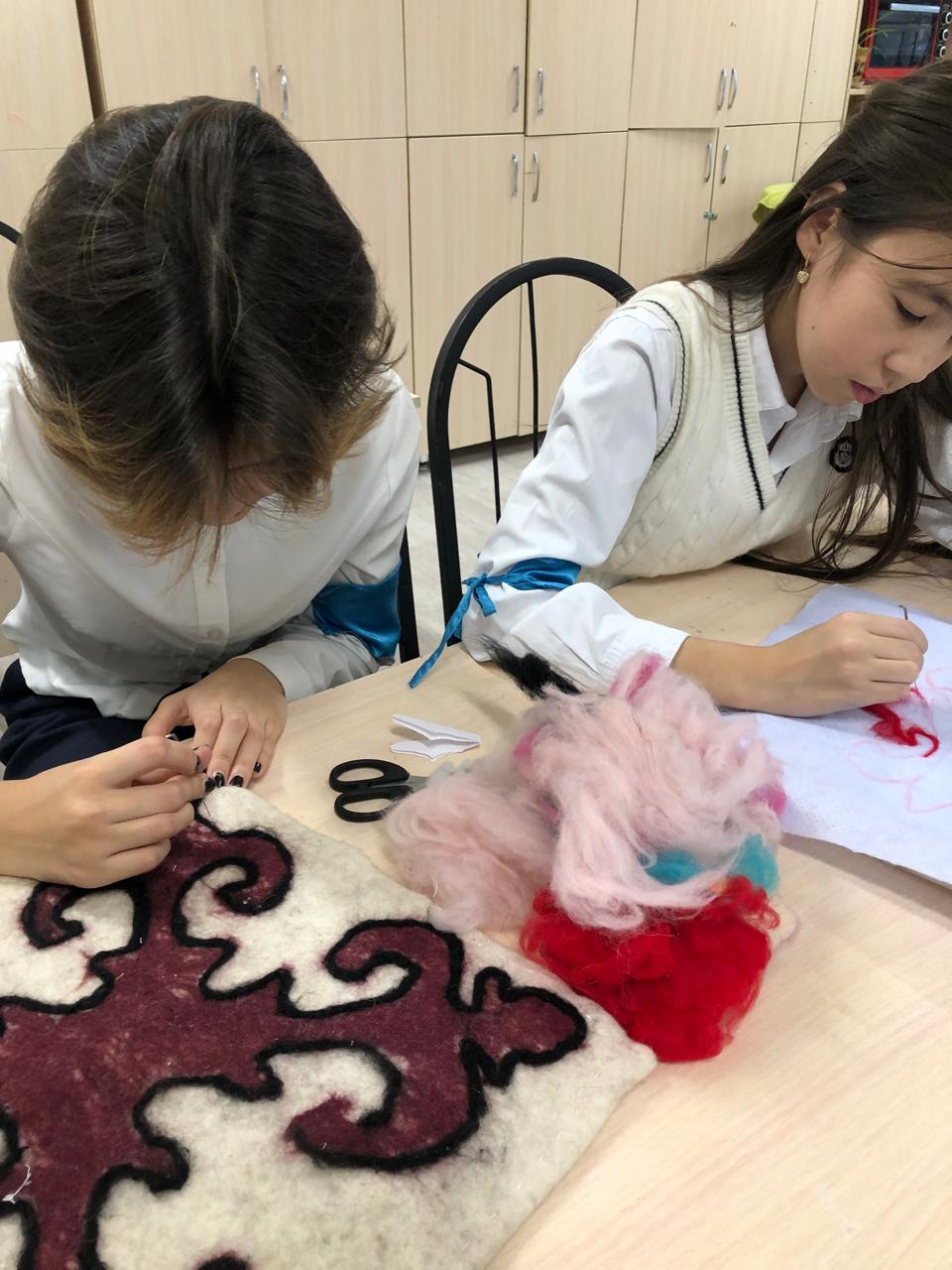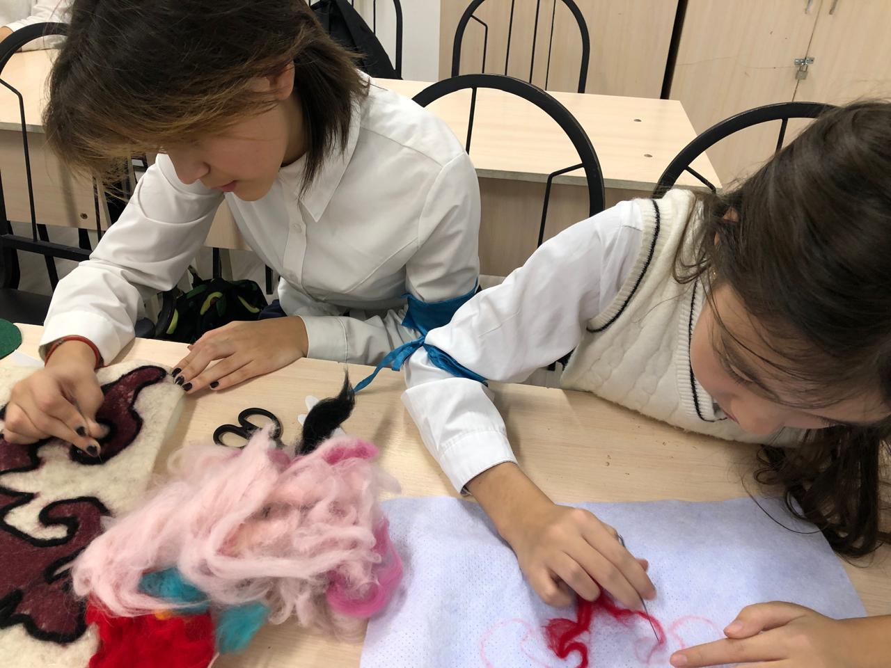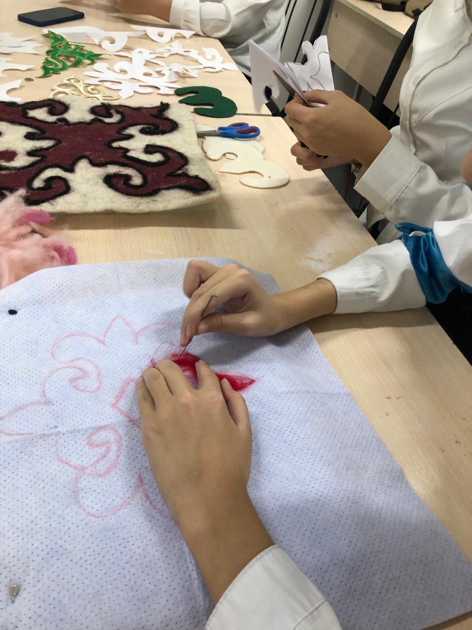 В рамках мероприятия «Мемлекеттік тіл -Менің тілім в КГУ «Гимназия No 18 учителями художественного труда было проведено внеклассное мероприятия на тему «Ұлттық оюлар -шебер сынып» среди учеников 7 Г класса .На данном мероприятии были представлены элементы казахские национальные орнаменты и их дальнейших использования в быту