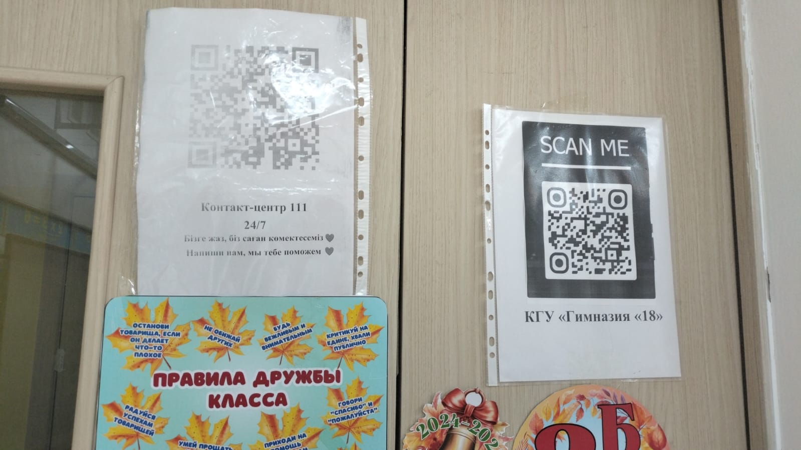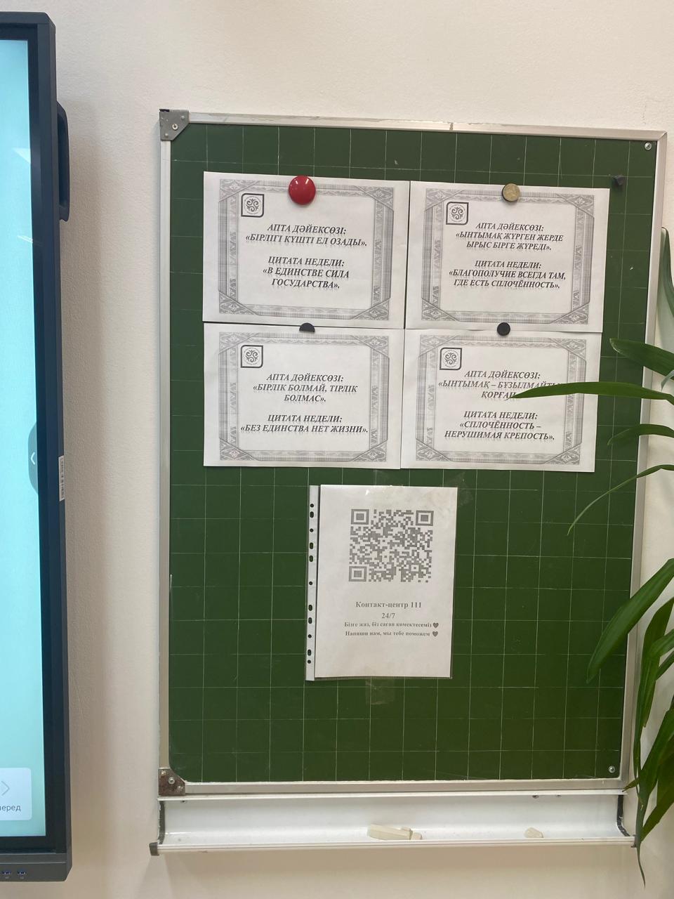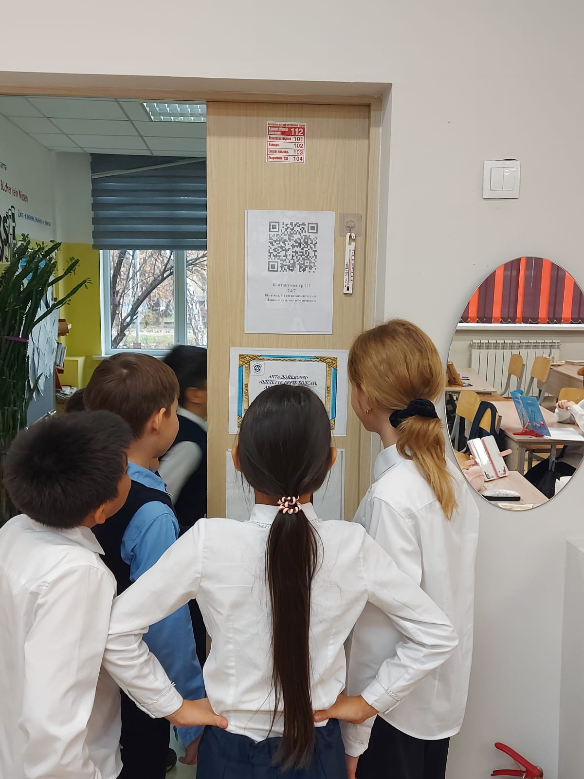 Гимназия ғимаратында, сыныптарда және фойеде 111 байланыс орталығының QR-кодтары орналастырылған.
