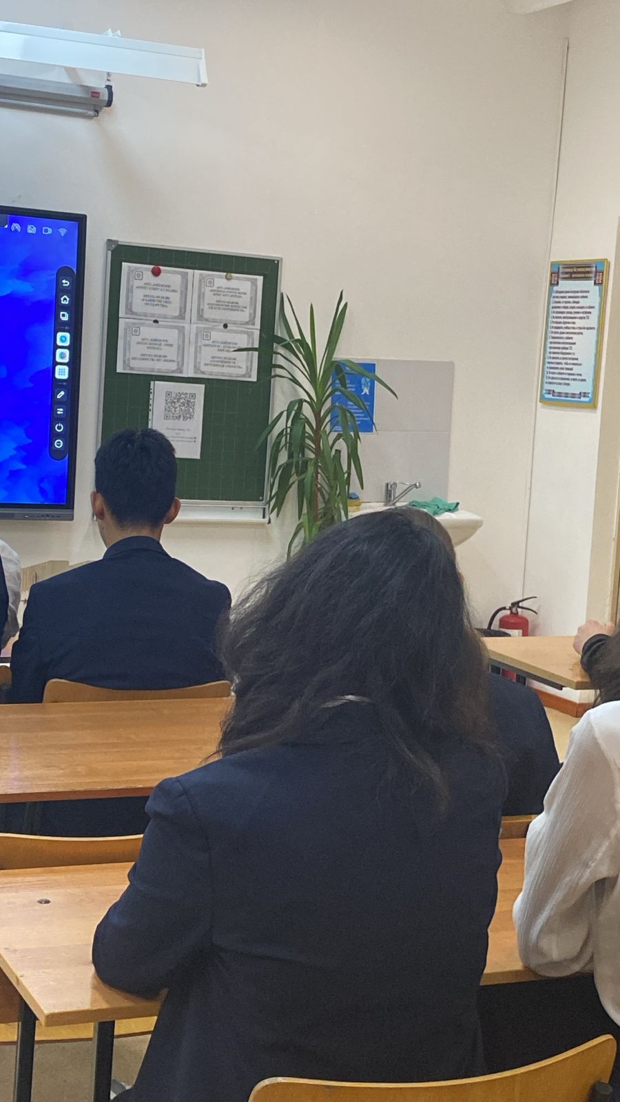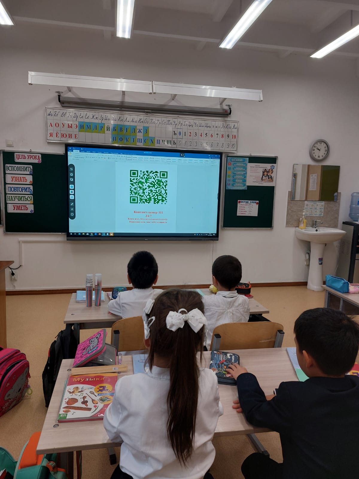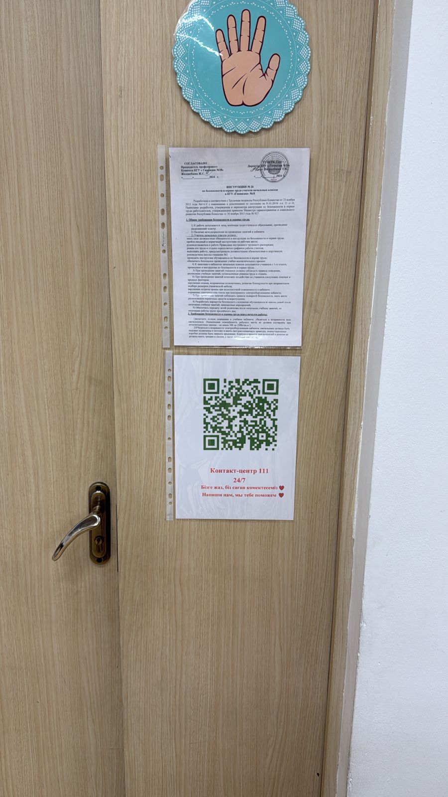 Гимназия ғимаратында, сыныптарда және фойеде 111 байланыс орталығының QR-кодтары орналастырылған.
