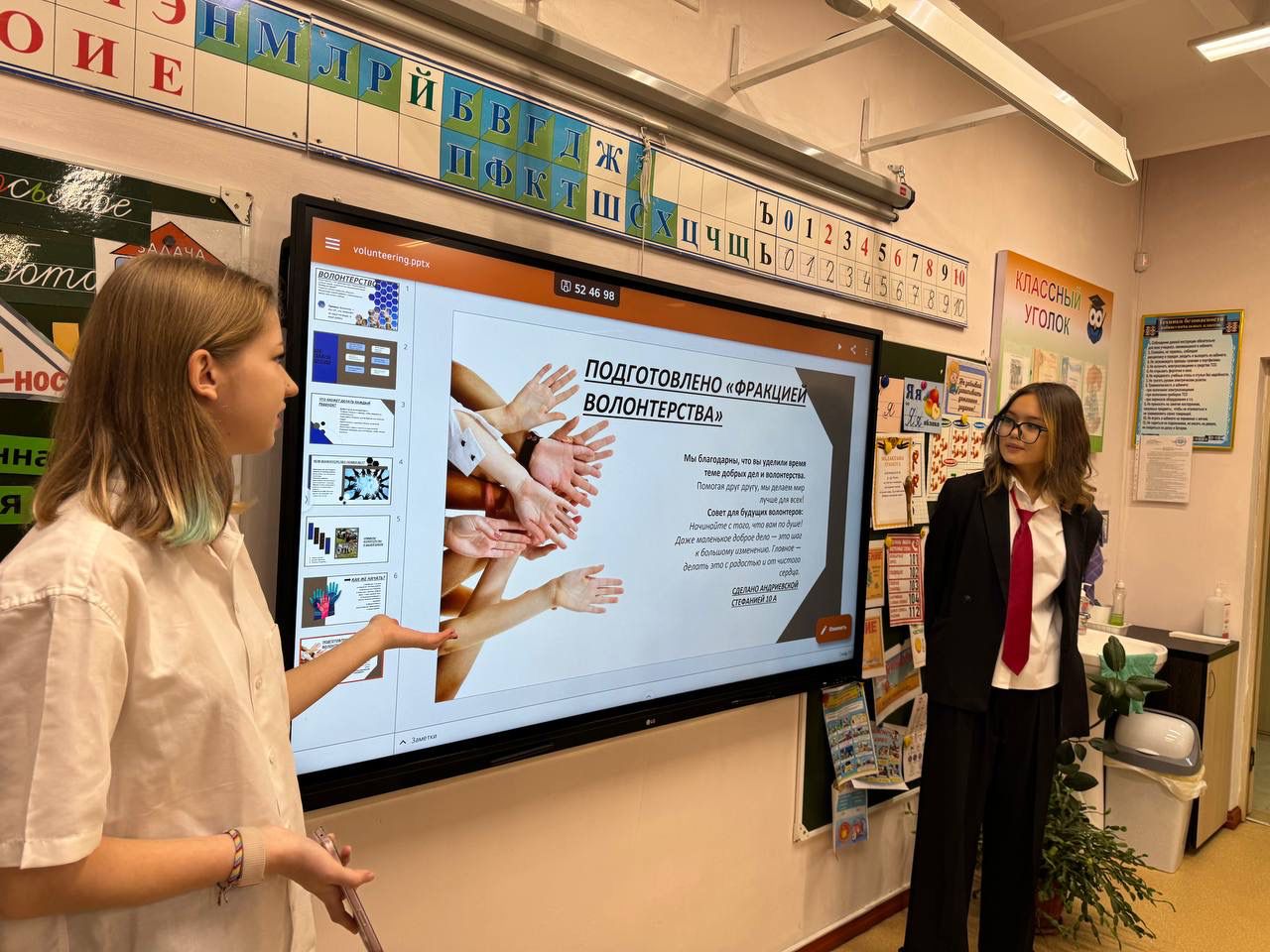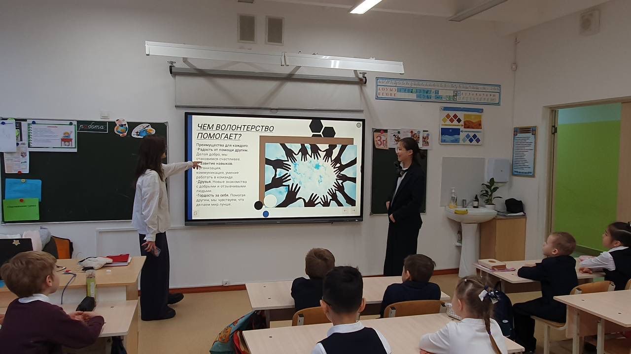 В ходе классного часа учащиеся узнали, что такое волонтерство, какие его виды существуют, и как учащиеся могут помогать окружающей среде и людям.