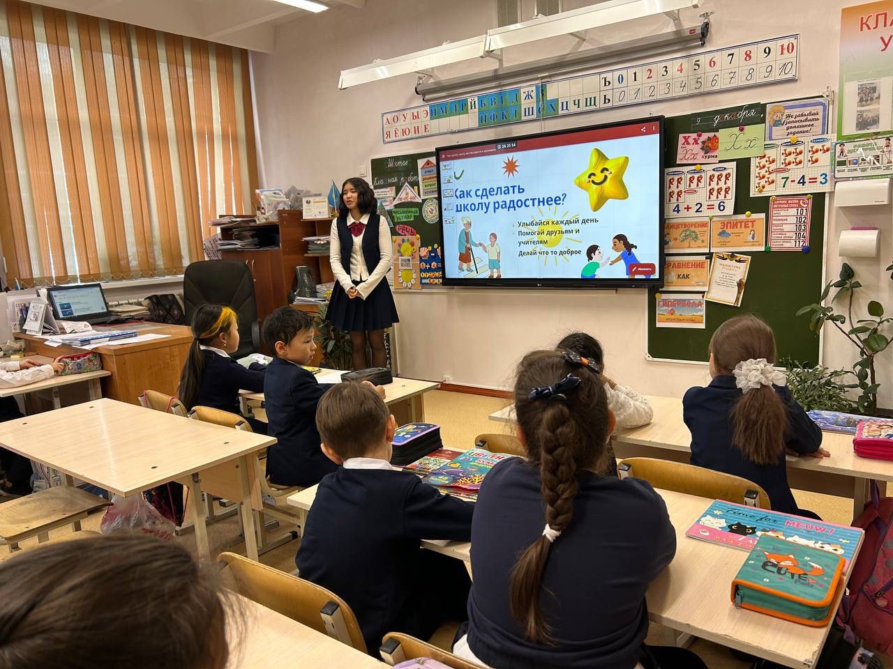09.12.2024 фракция «Счастья» провела классный час, для учащихся 1 классов на тему: “Как сделать школу местом радости и вдохновения?”