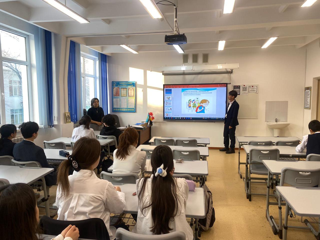 Сынып сағаты: «КӨМЕК бағдарламасы», «Бірлік пен ынтымақ», Жол жүру ережесі, «Буллингке жол жоқ», «Жеке қауіпсіздік».