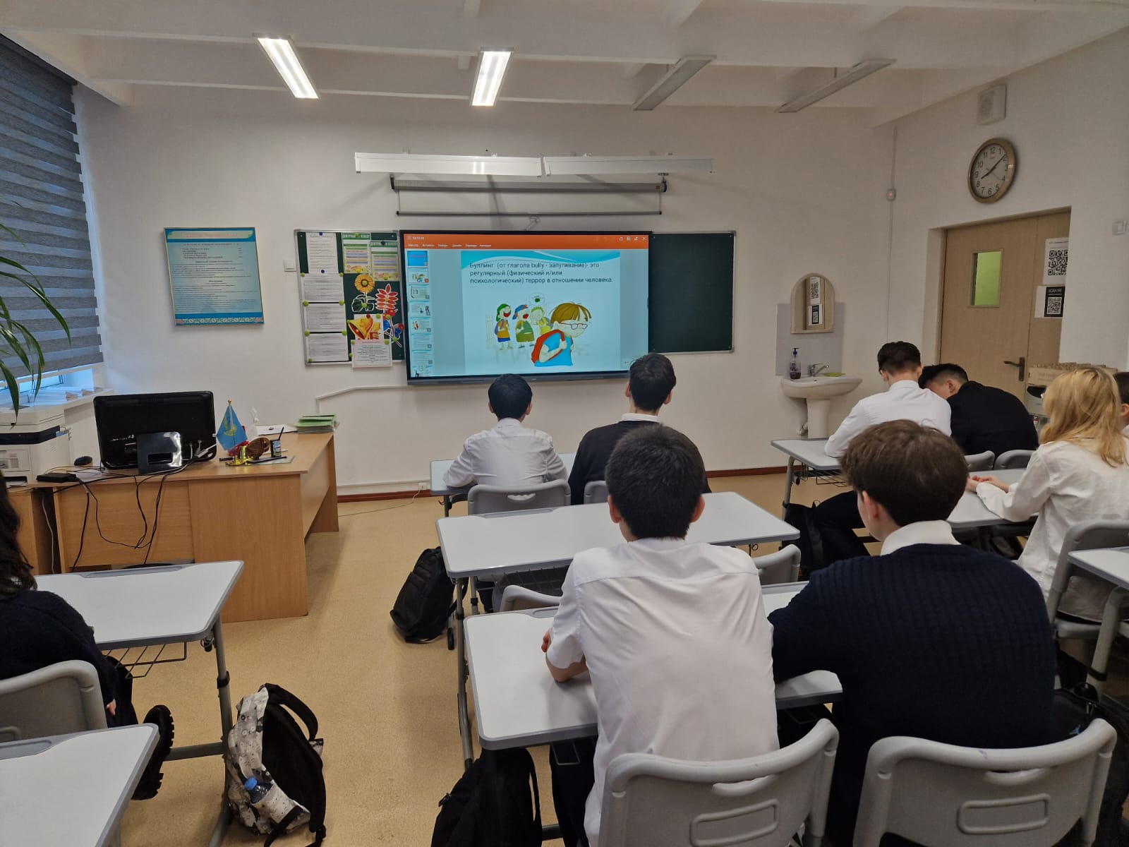 Қазақстан мәдениеті құндылықтары негізінде рухани-адамгершілік қасиеттерді, азаматтық жауапкершілік пен патриотизмді, адалдық пен әділдікті дамыту арқылы оқушылардың жан-жақты дамыған тұлғасын қалыптастыру мақсатында, «БІРТҰТАС ТӘРБИЕ» бағдарламасын жүзеге асыру аясында 23 желтоқсан күні 1-11 сынып сынып жетекшілері «КӨМЕК бағдарламасы», «Бірлік пен ынтымақ», Жол жүру ережесі, «Буллингке жол жоқ», «Жеке қауіпсіздік» тақырыптарында сынып сағаттарын өткізді.