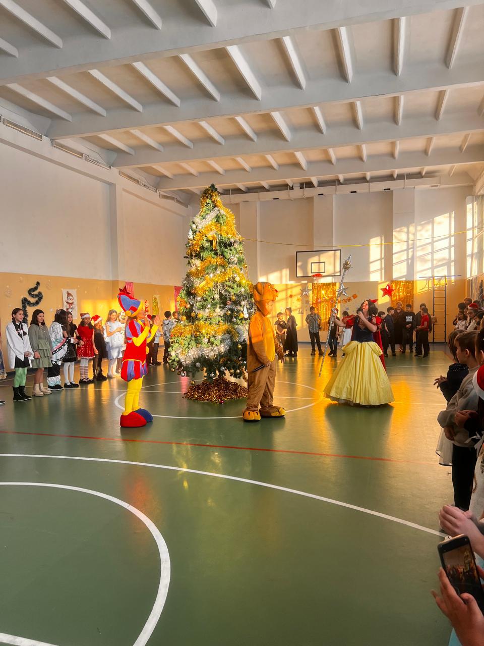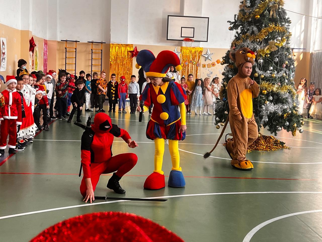 В преддверии Нового года 25.12.24 г в гимназии прошли новогодние ёлки для учащихся 1-4 классов Ребята пришли на елку в карнавальных костюмах : принцесс, ковбоев, драконов и других сказочных героев. В спортивном зале их ждала огромная новогодняя елка, а развлекали детей сказочные персонажи: дед Мороз, Снегурочка, человек-паук, клоун