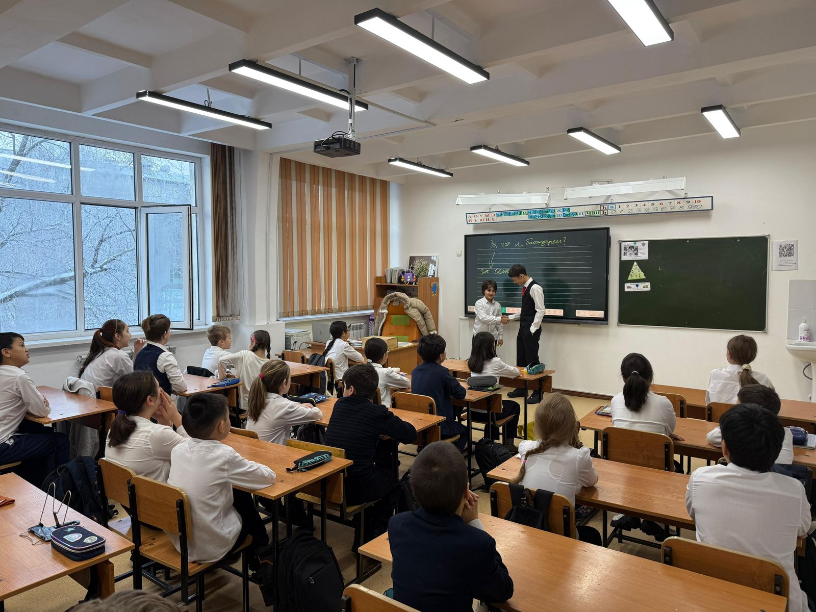 23.12.24 күні «Бақыт» фракциясы 4-сынып оқушыларымен «Рақмет айту сағаты» тақырыбында әңгіме өткізді. Оқушылар кіші сынып оқушыларымен мынадай өзекті сұрақтарды талқылады: