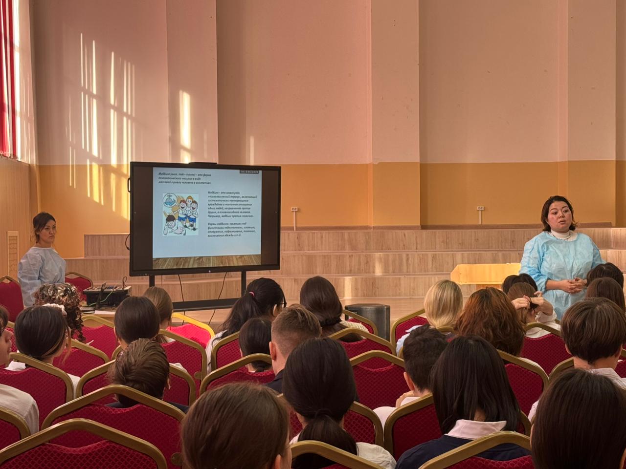 "Моббинг, қорқыту, хейзинг-мектеп оқушылары үшін не қауіпті?». 20.01.2025 ж. 7 сынып оқушыларына арналған "№18 Гимназия " КММ Кәмелетке толмағандар арасындағы суицидтің алдын алу орталығының психологтары Г. М. Баризова мен А. А. Байзакова " Моббинг, буллинг, хейзинг-оқушылар үшін не қауіпті?». Профилактикалық тренингтер білім беру ұйымында балалар үшін қауіпсіз психологиялық кеңістік құруға мүмкіндік береді және жасөспірімдер тобында тұрақты достық қарым-қатынас қалыптастырады. Тренинг қорытындысы бойынша балалар жанжалда сындарлы әрекет ету,агрессияны төмендету және өздері туралы түсінік алу дағдыларын игерді.