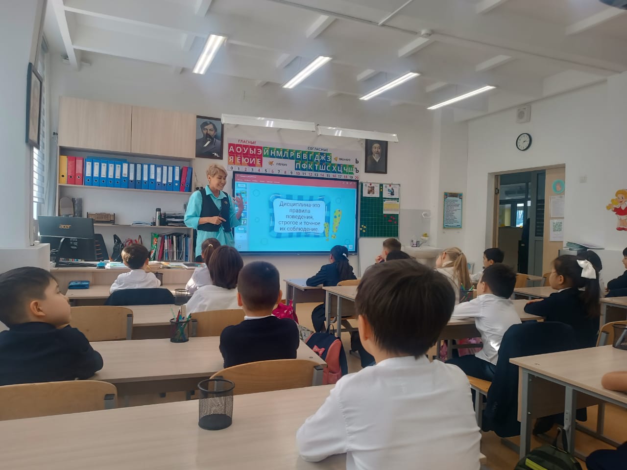 Во время обсуждения темы ученики активно отвечали на вопросы, делясь примерами из своей жизни, когда порядок и дисциплина помогали им избежать проблем. Затем состоялась игра, в которой дети разделяли карточки с различными действиями на действия, связанные с порядком, и беспорядком. Урок прошел интересно с игровыми моментами