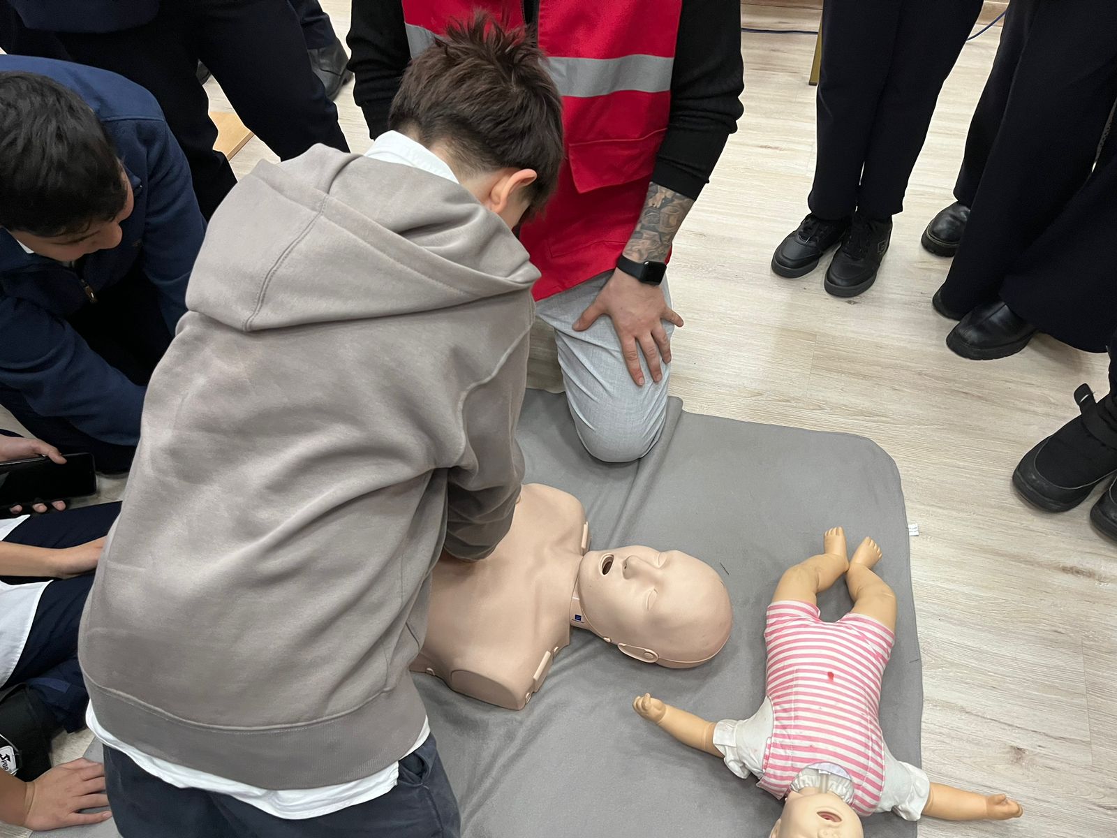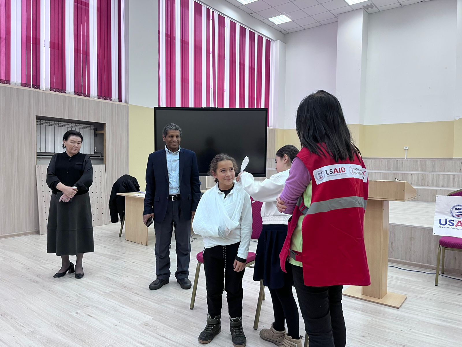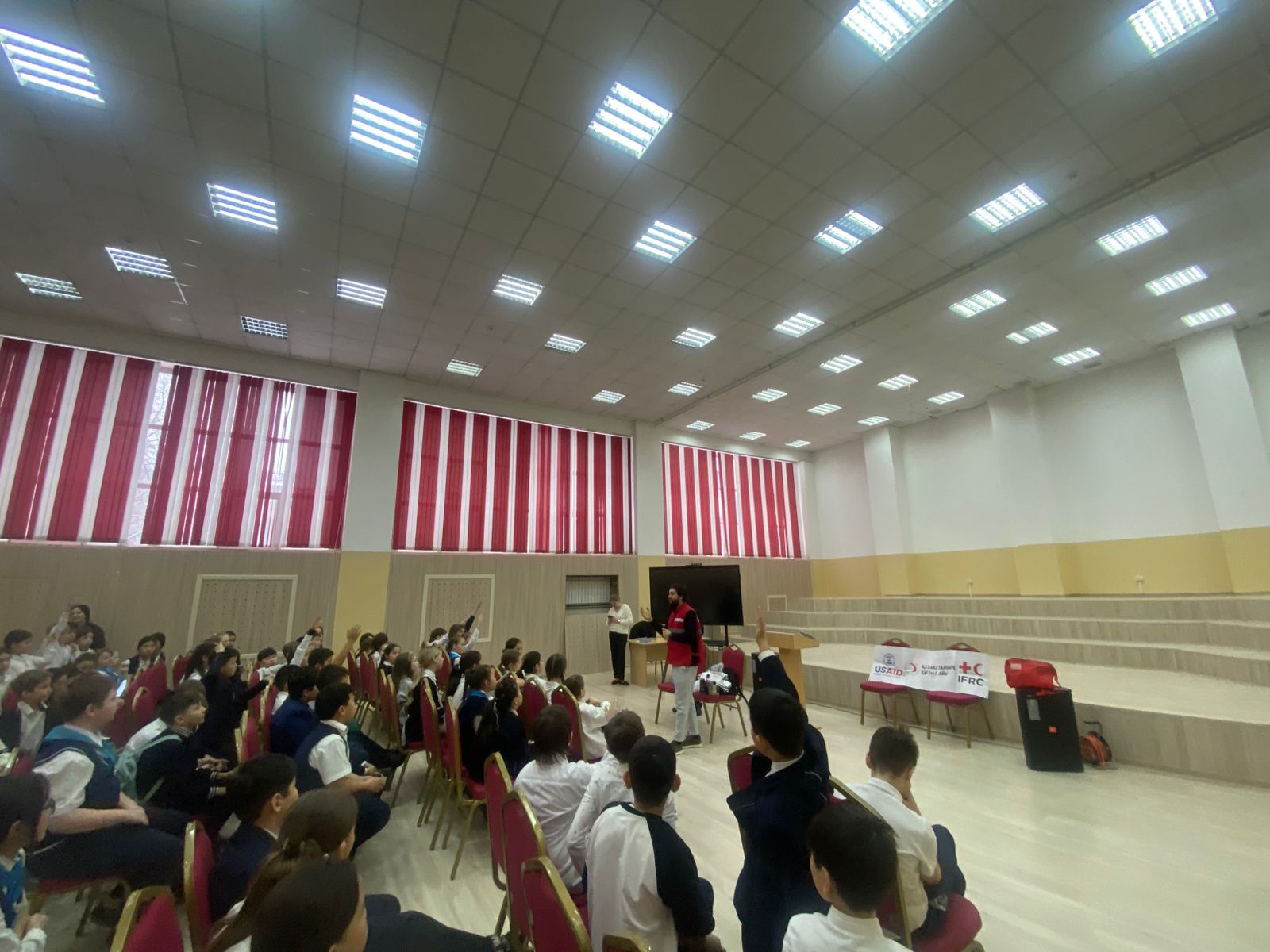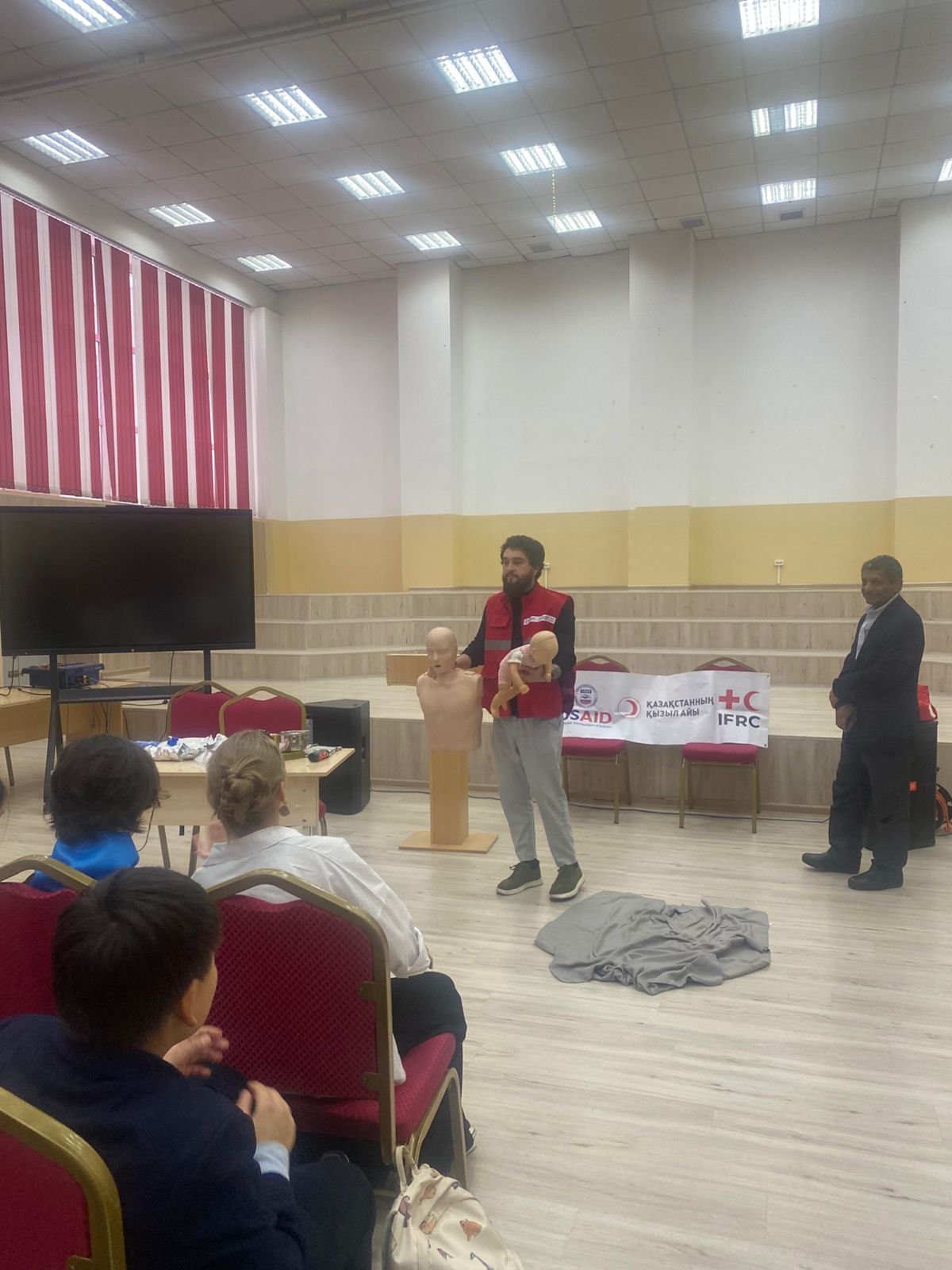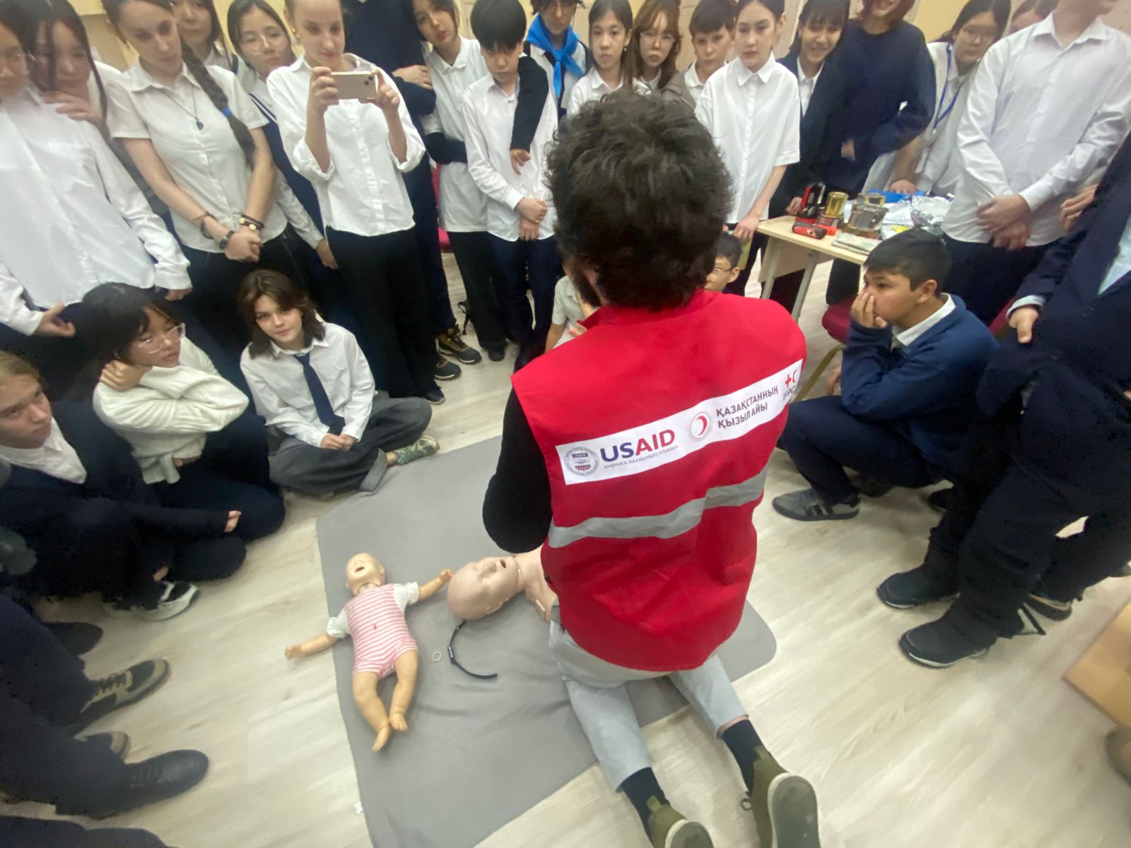 На обучении инструкторы Красного Полумесяца РК, рассказали что делать до, во время и после землетрясений. Показали состав тревожного чемоданчика и рассказали как составить карточку на случай ЧС. Также инструктор по первой помощи провел обучение на тему «Сердечно-легочная реанимация» в ходе тренинга учащиеся задавали интересующие их вопросы и смогли также попрактиковаться на специальном манекене по обучению первой помощи.