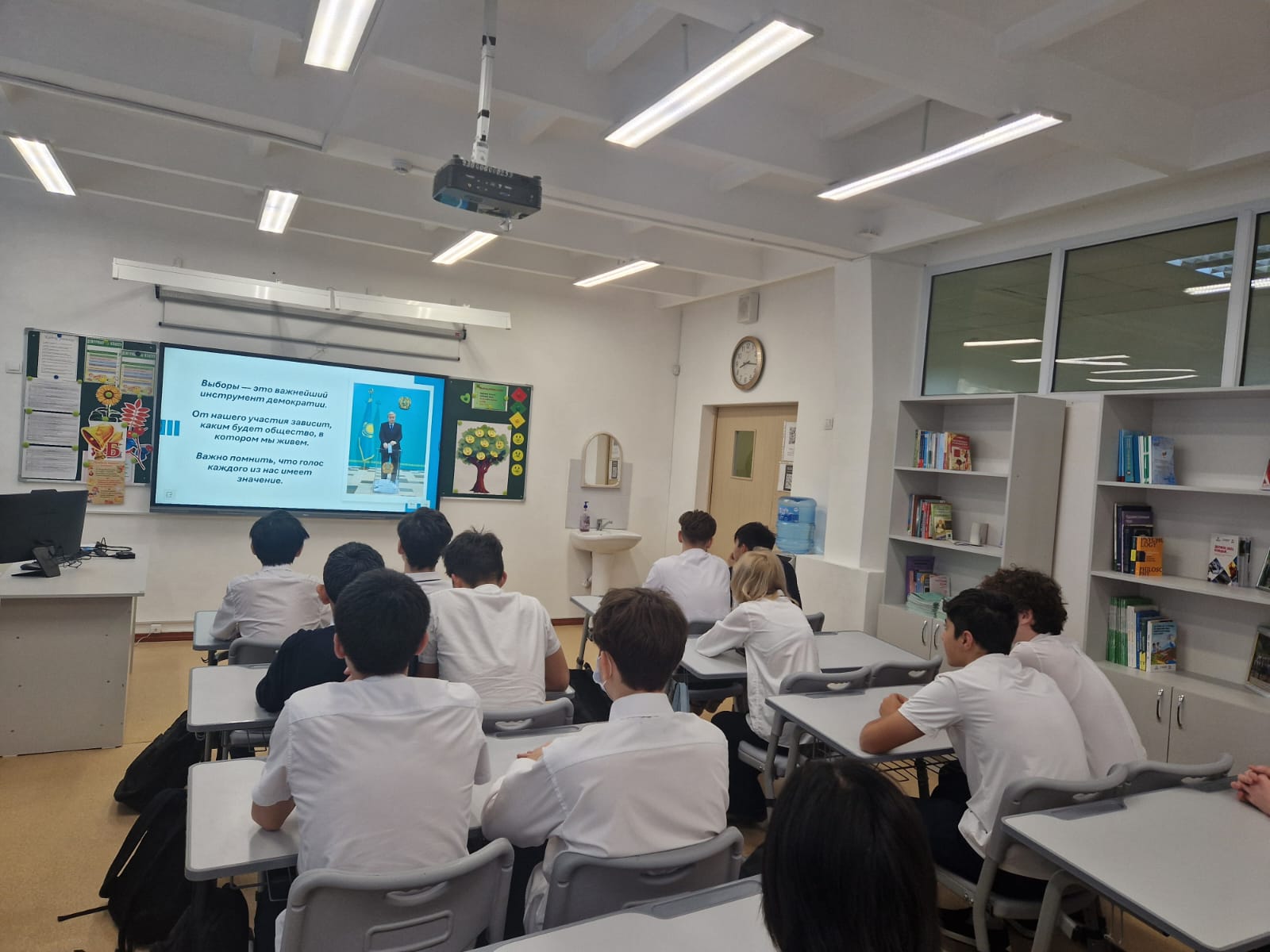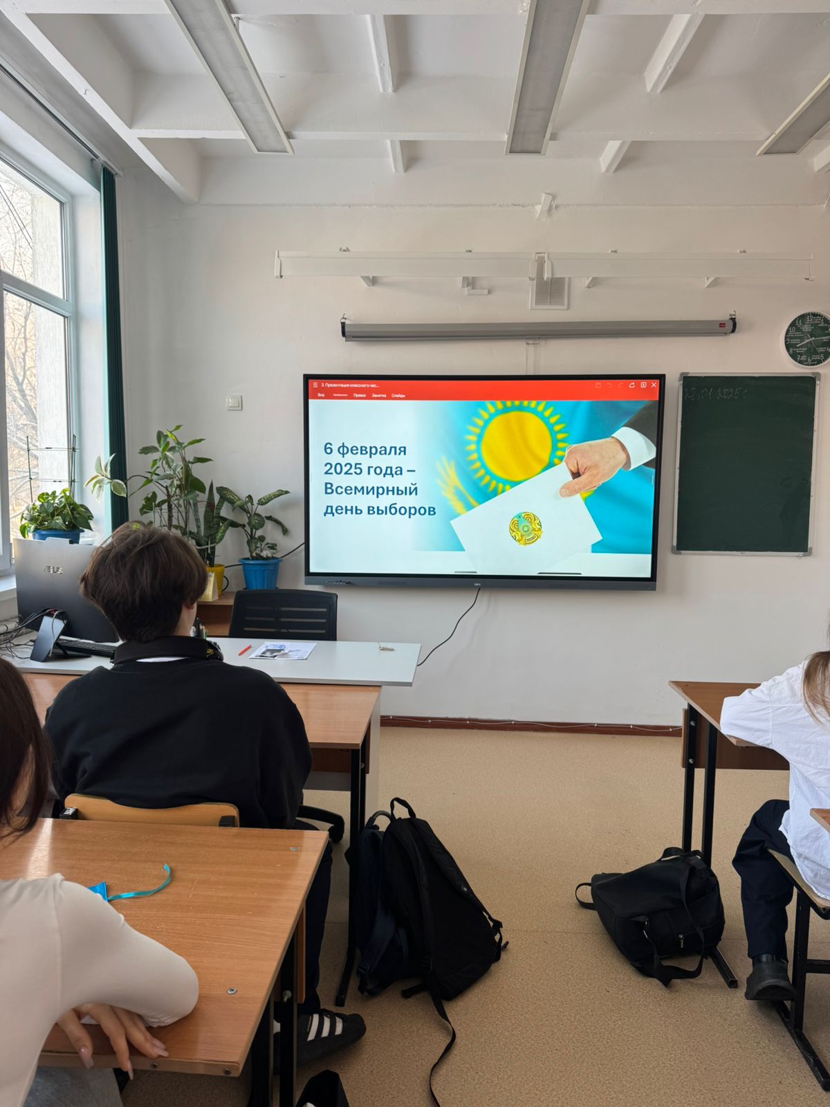 Бұл сынып сағаты Дүниежүзілік сайлау күні қарсаңында өткізілді.